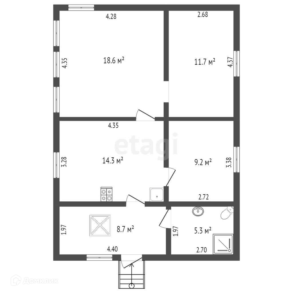 В доме три жилые комнаты,объединенный санузел, кухня 14,3 кв.м., своя скважина.Дом отделан сайдингом.Поднят фундамент(кирпич),заменена крыша.