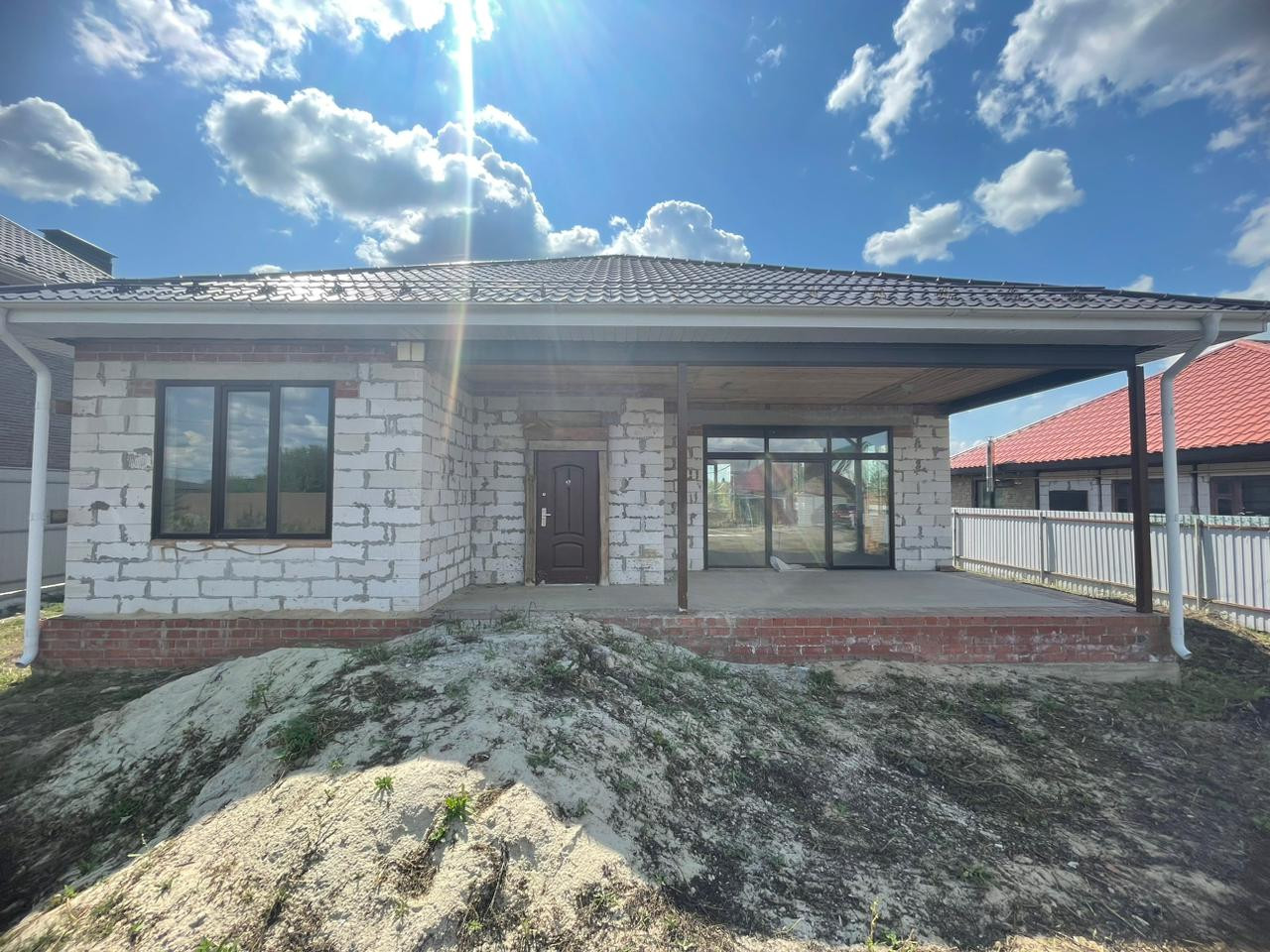 Новый и просторный дом особняк . Кухня-гостиная 43 кв.метра с витражным окном порталом, 3 изолированные спальни, большой коридор, место для гардеробной. В наличии новая входная дверь, она не установлена ( в целях сохранности внешнего вида). По всему дому установлены теплые полы .  Ровный участок, где можно делать всё что душе угодно (баня, гараж, бассейн, зона барбекю, огород). Подходит под все виды расчёта. Просмотр в любое, удобное для Вас время.