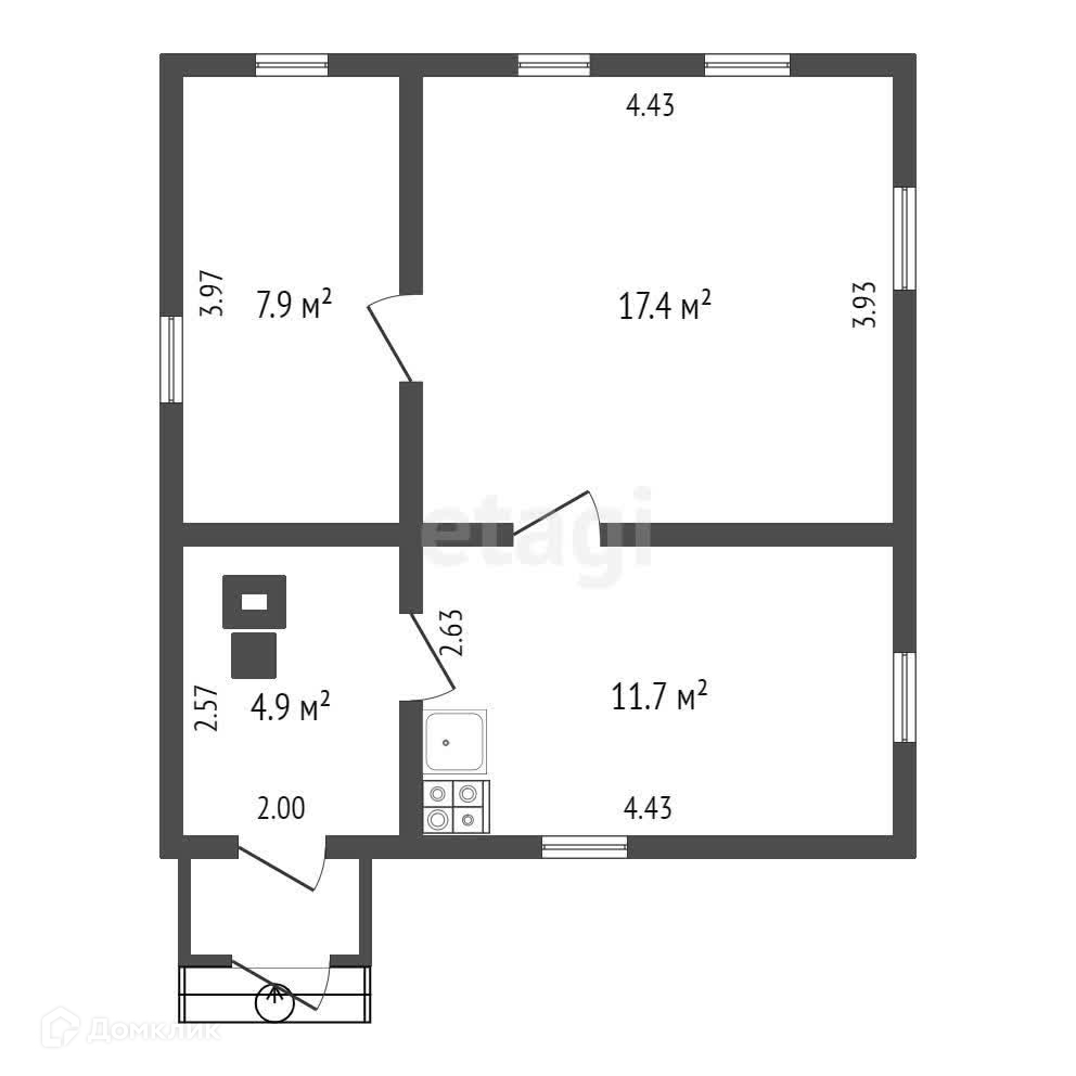 Общая площадь 41.9 м2