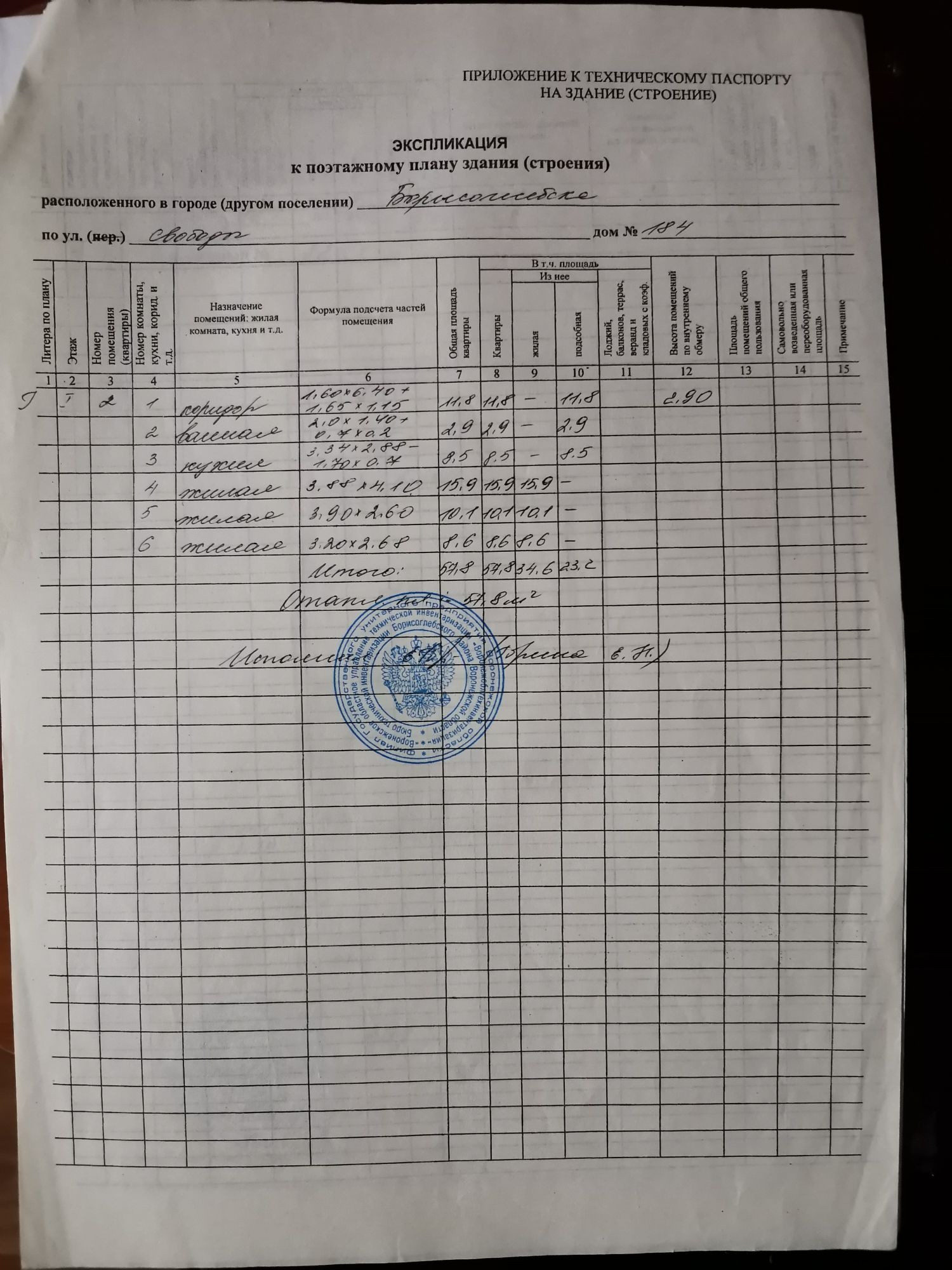 3-комнатная квартира, 57.8 м2, этаж 1 / 2, на продажу в Борисоглебске, улица Свободы, 184