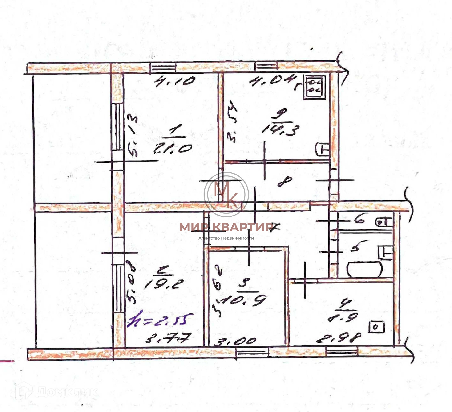 Высота потолков 2.5 м