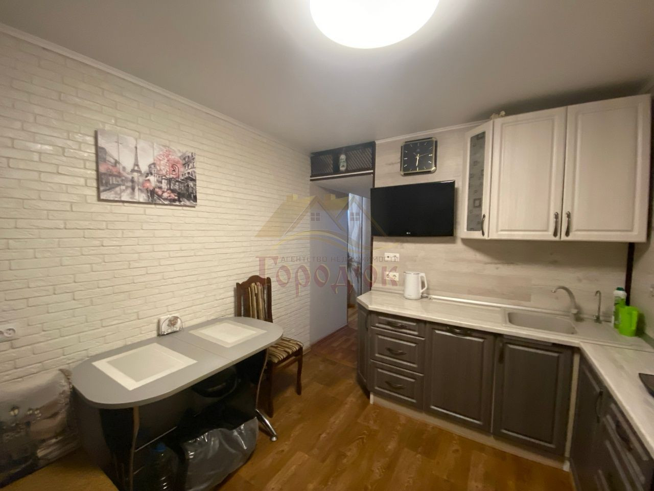 Покупателям остаётся в подарок кухонный гарнитур, вся мебель и часть бытовой техники.
