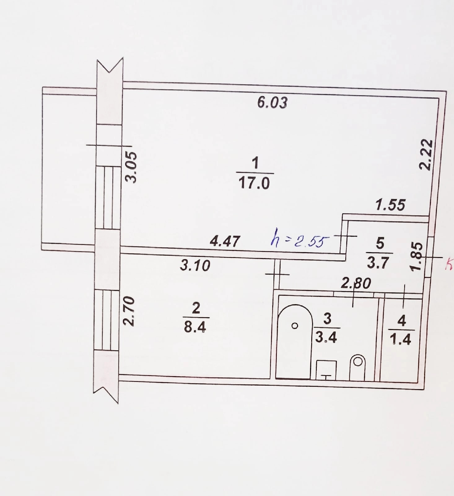 Высота потолков 2.55 м