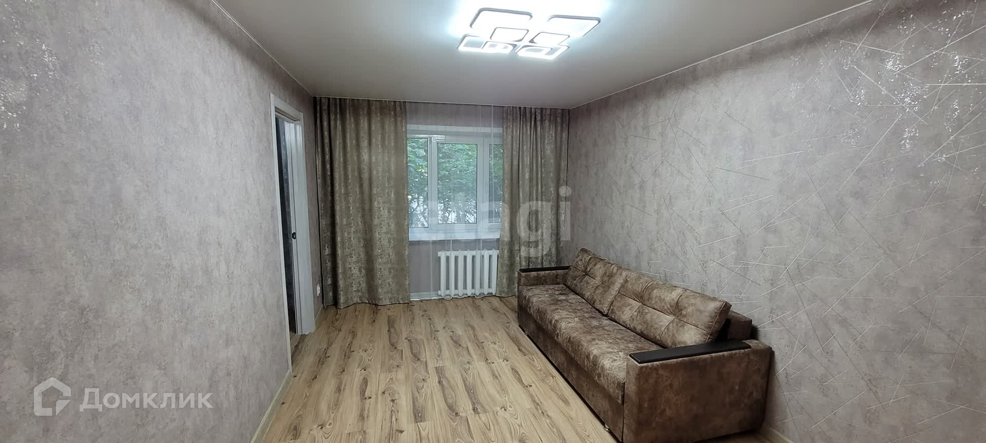 Современные окна и отделка: Пластиковые окна, ламинат на полу, новые обои.