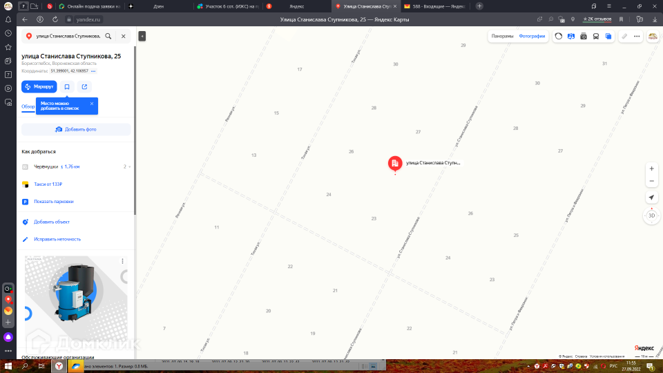 Участок под ИЖС, 6.5 сот. на продажу в Борисоглебске, улица Станислава Ступникова, 25