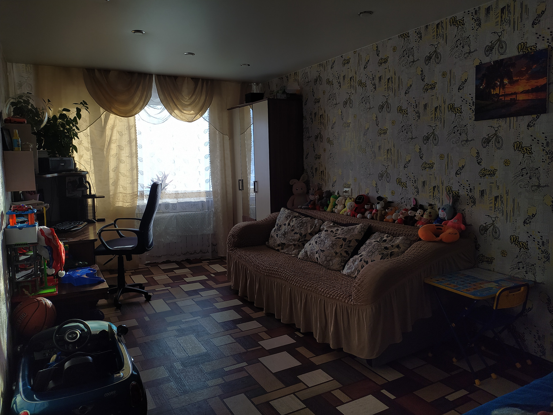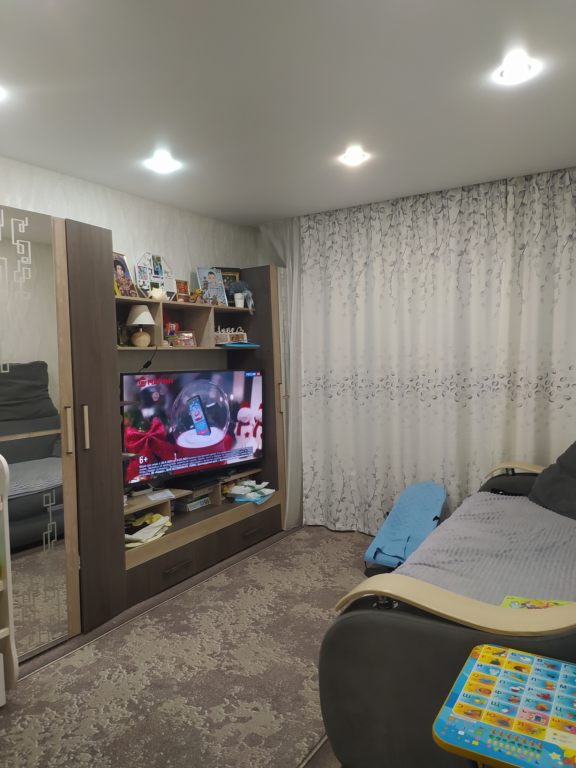 Квартира в отличном состоянии, очень тёплая,новая сантехника,окна пластик,балкон застеклён,натяжные потолки, ванна и туалет отделаны панелями. Очень удобное расположение рядом два детских сада и школа.