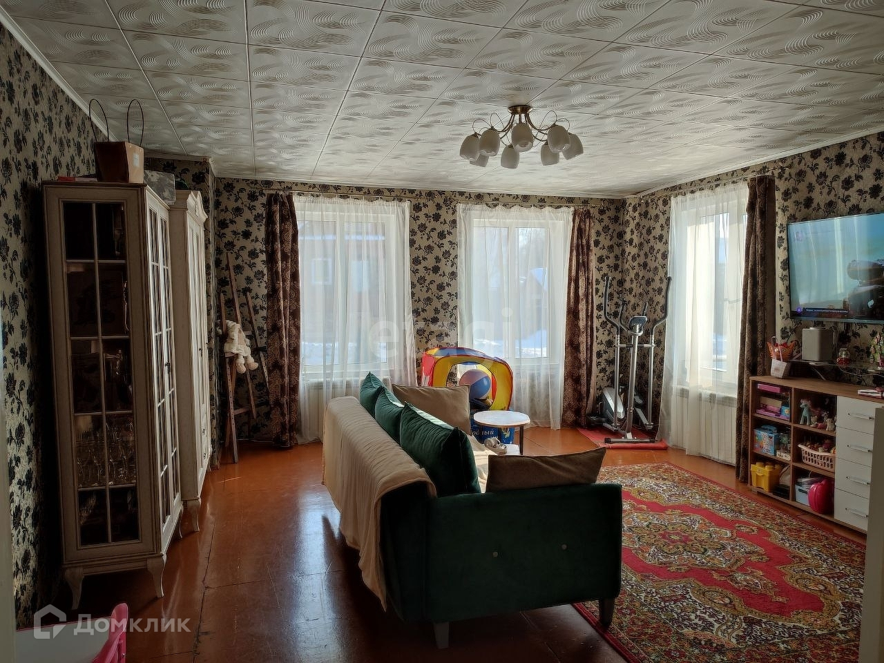 Открывая двери дома, вы попадаете в шикарное помещение общей площадью 104 кв.м . В доме три комнаты, большая кухня правильной формы, с хорошим кухонным гарнитуром и новым ремонтом, мечта любой хозяйки, здесь можно собирать большую компанию для веселья и самим собираться большой дружной семьей за вкусным обедом. Ванна и туалет раздельные, что очень экономит утром время. Комнаты все выполнены в теплых тонах, светлые и теплые. Имеется кондиционер, очень спасает жарким летом.