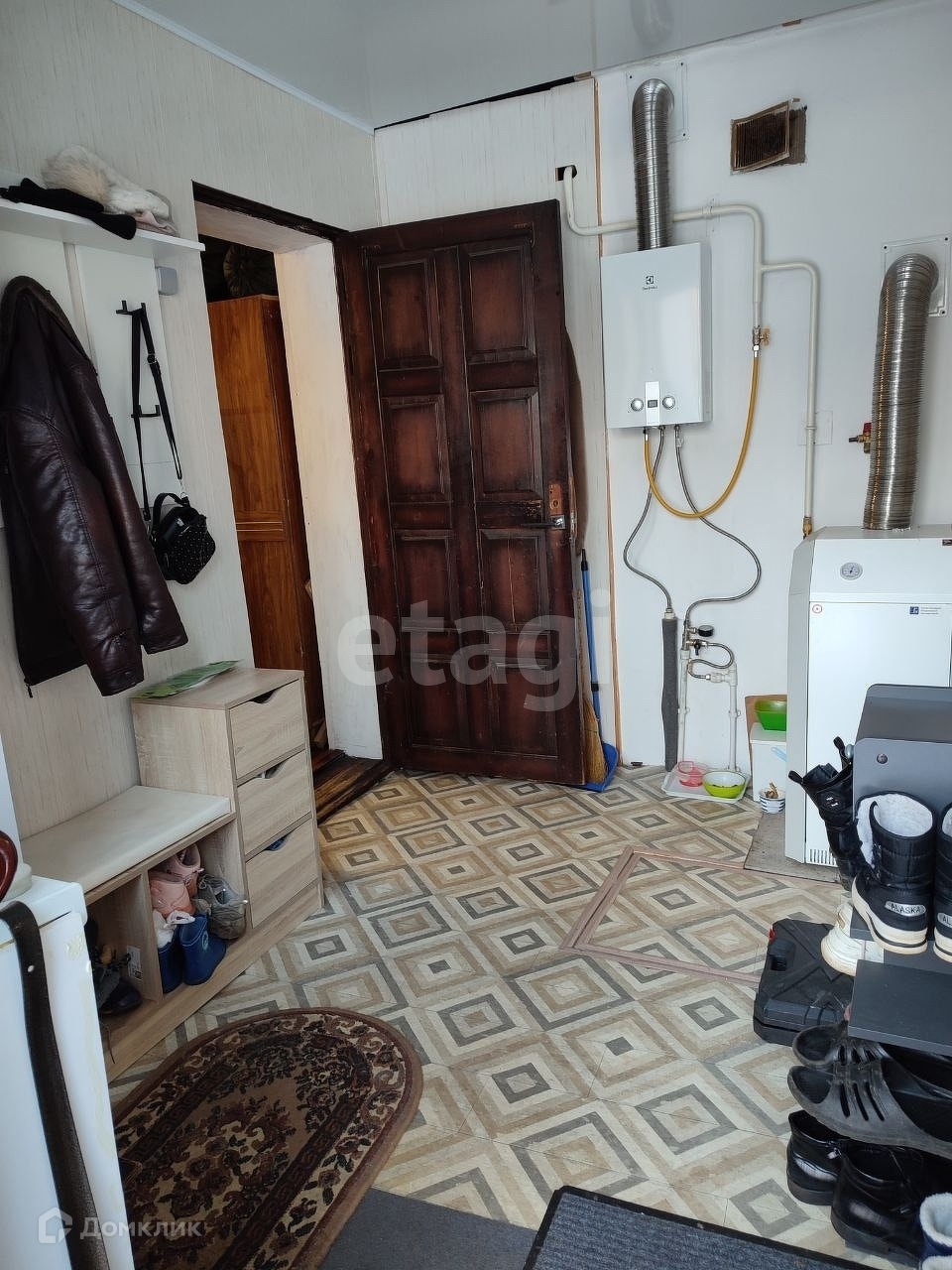 Дом крепкий, материал стен кирпич, из коммуникаций: электричество , газ, отопление, септик. Есть подвал, сухой. Отопление заменено на ПП трубы и биметаллические радиаторы. Напольный котел Лемакс 2018г, новый проточный водонагреватель 2022г. Новая электрическая проводка, разделение света и розеток, покрытие интернета реализовано в т.ч во дворе.