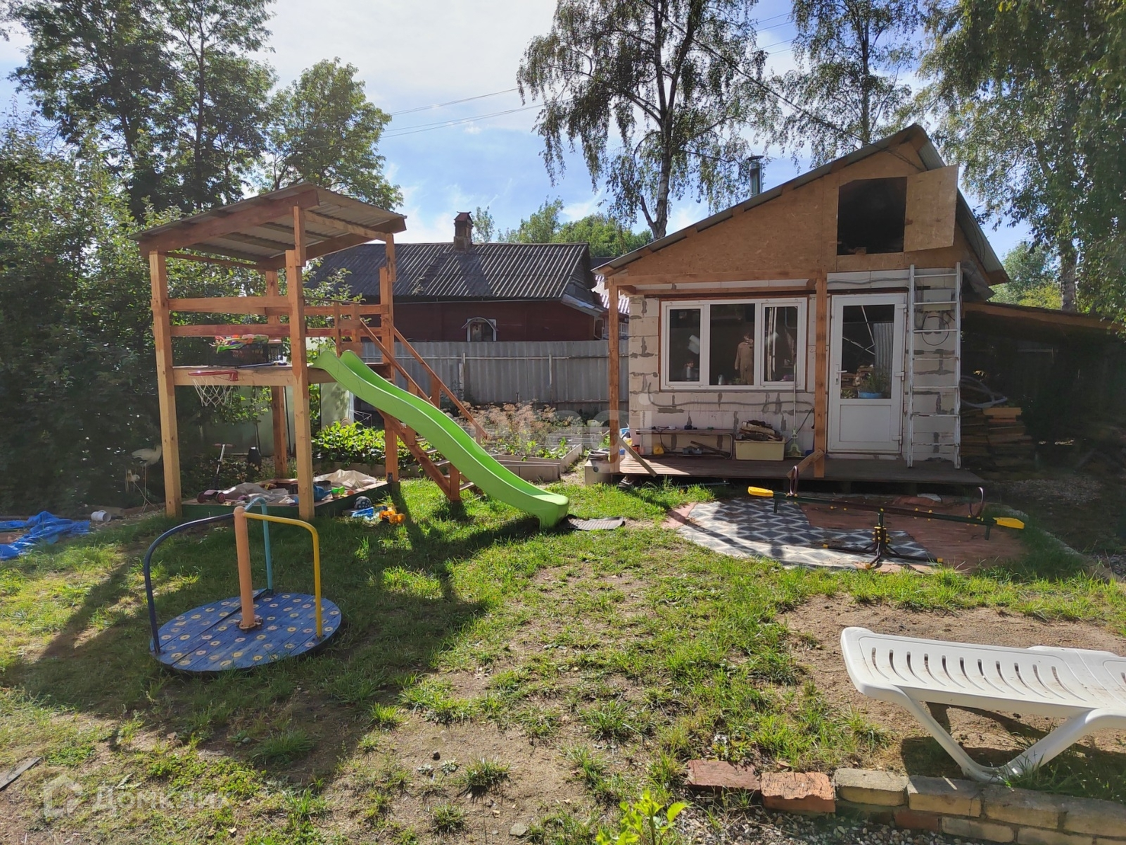 Входя на территорию, Вы оказываетесь на участке площадью 6 соток. На участке есть теплица, парник, детская площадка с горкой и песочницей, карусель, очень удобно для семьи где есть маленькие дети. Вдоль дома навес 10м для хранения стройматериалов, и прочего. Есть крытая беседка . А так же имеется новая баня 2019 г постройки с газоблока с навесом под дрова. По всему периметру имеется видеонаблюдение. Реализовано умное, в т.ч. голосовое управление, въездными воротами, входной калиткой, насосом отопления, вытяжкой в бане.