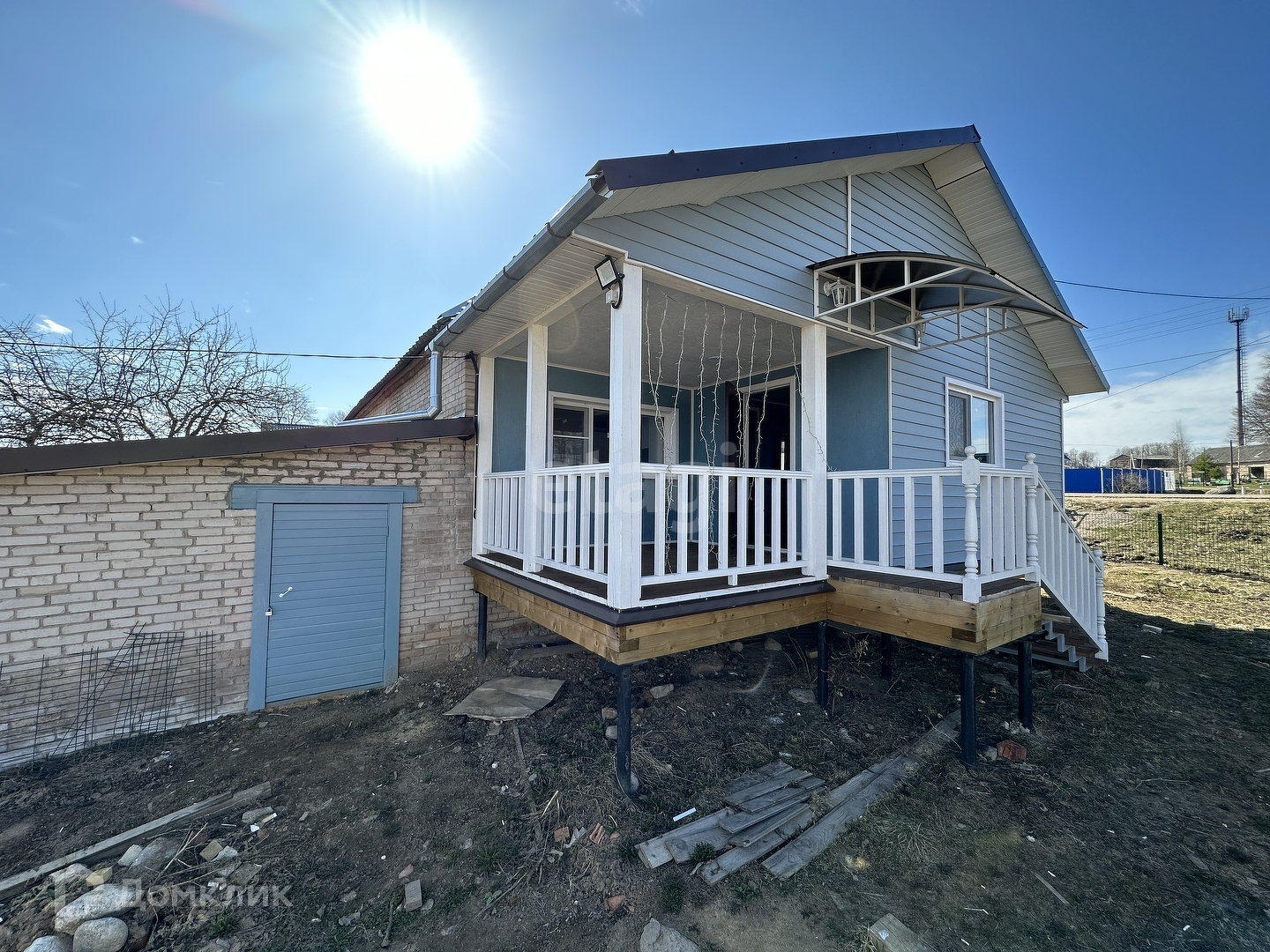 Квартира в двух квартирном кирпичном доме 1982 года постройки на первой линии берега озера Меглино. Веранда обшита сайдингом. Мебель и техника частично остаются.