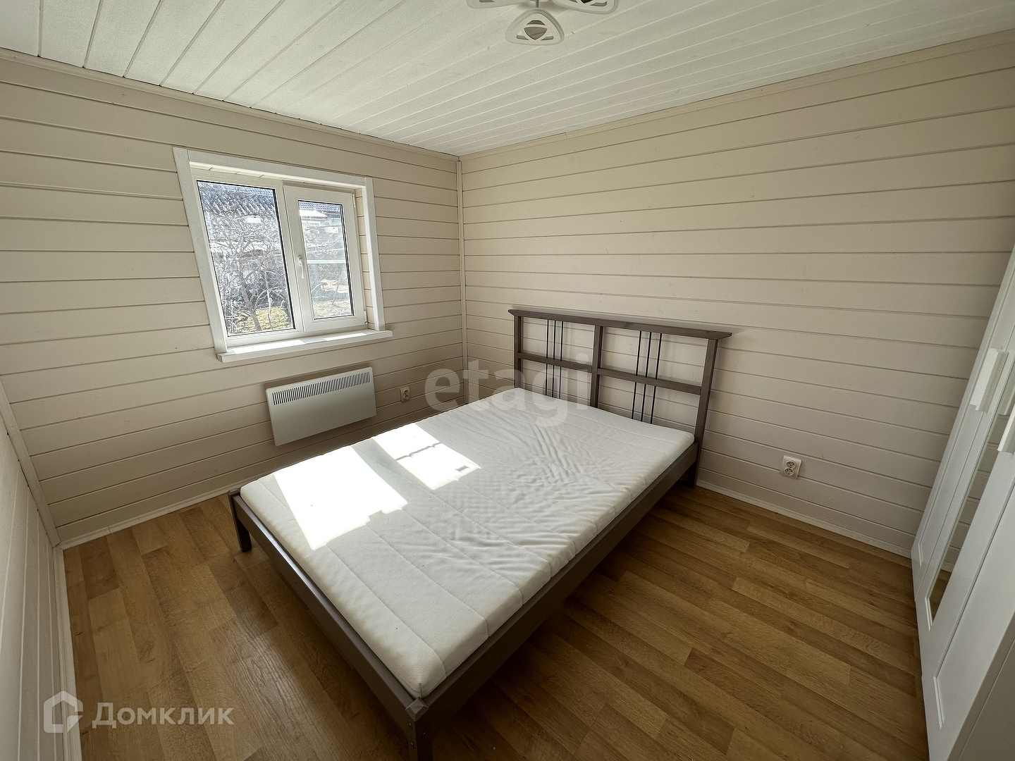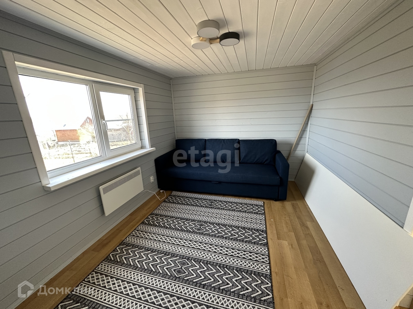 В доме: спальня 9,7 кв.м, гостевая 9,7 кв.м, кухня 7,3 кв.м и санузел.