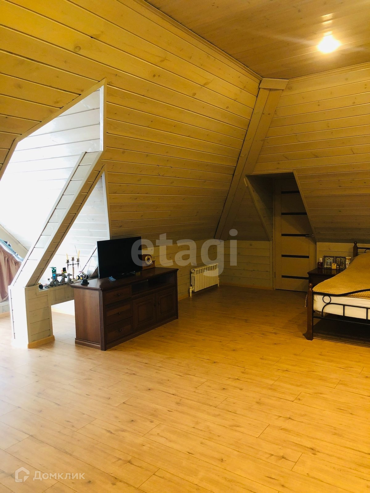 Третий этаж это огромная комната большая спальня с кроватью и диваном. Так же санузел свой на этаже.