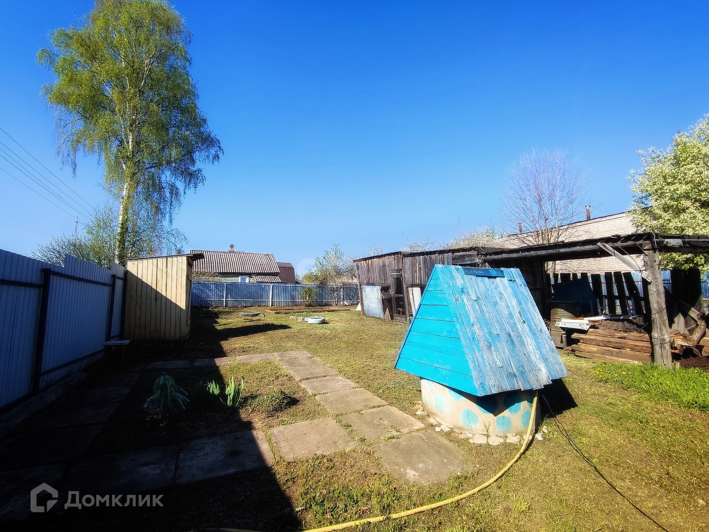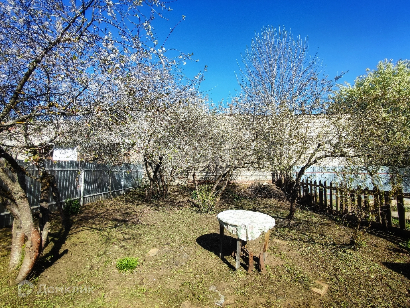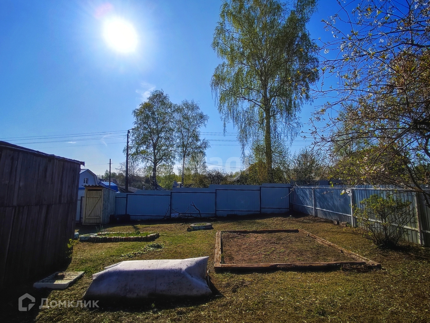 Придомовая территория огорожена забором, со стороны фасада профлист.