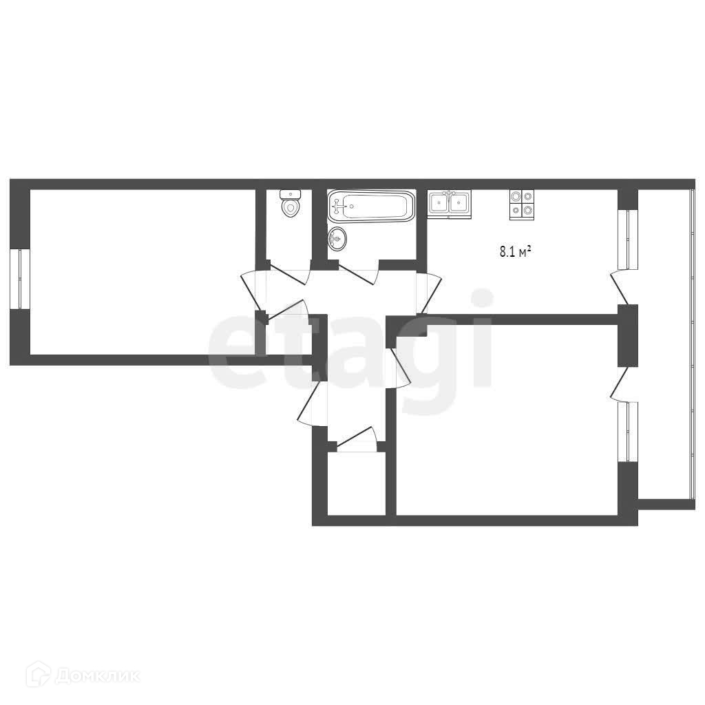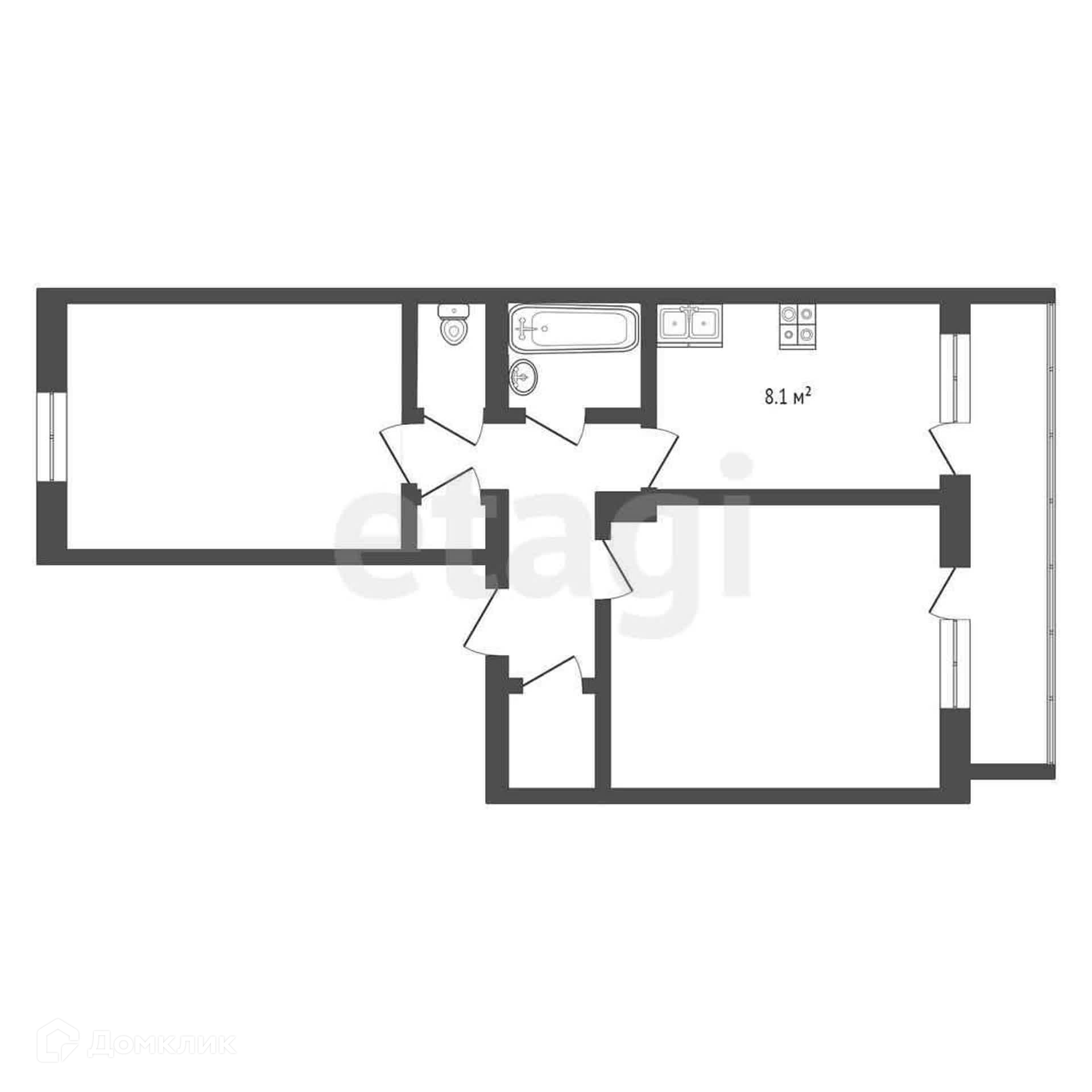 Гостиная имеет геометрически правильную форму и представлена площадью 15,1, что позволит вам разделить пространство на рабочую зону, зону отдыха или детскую зону. Немаловажным плюсом станет наличие застеленного балкона, который может выступать в роли дополнительной зоны хранения. А для тех, кто любит вкусный кофе или чай станет прекрасной возможностью провожать встречать рассвет или закат держа в руках свой любимый согревающий напиток.)
