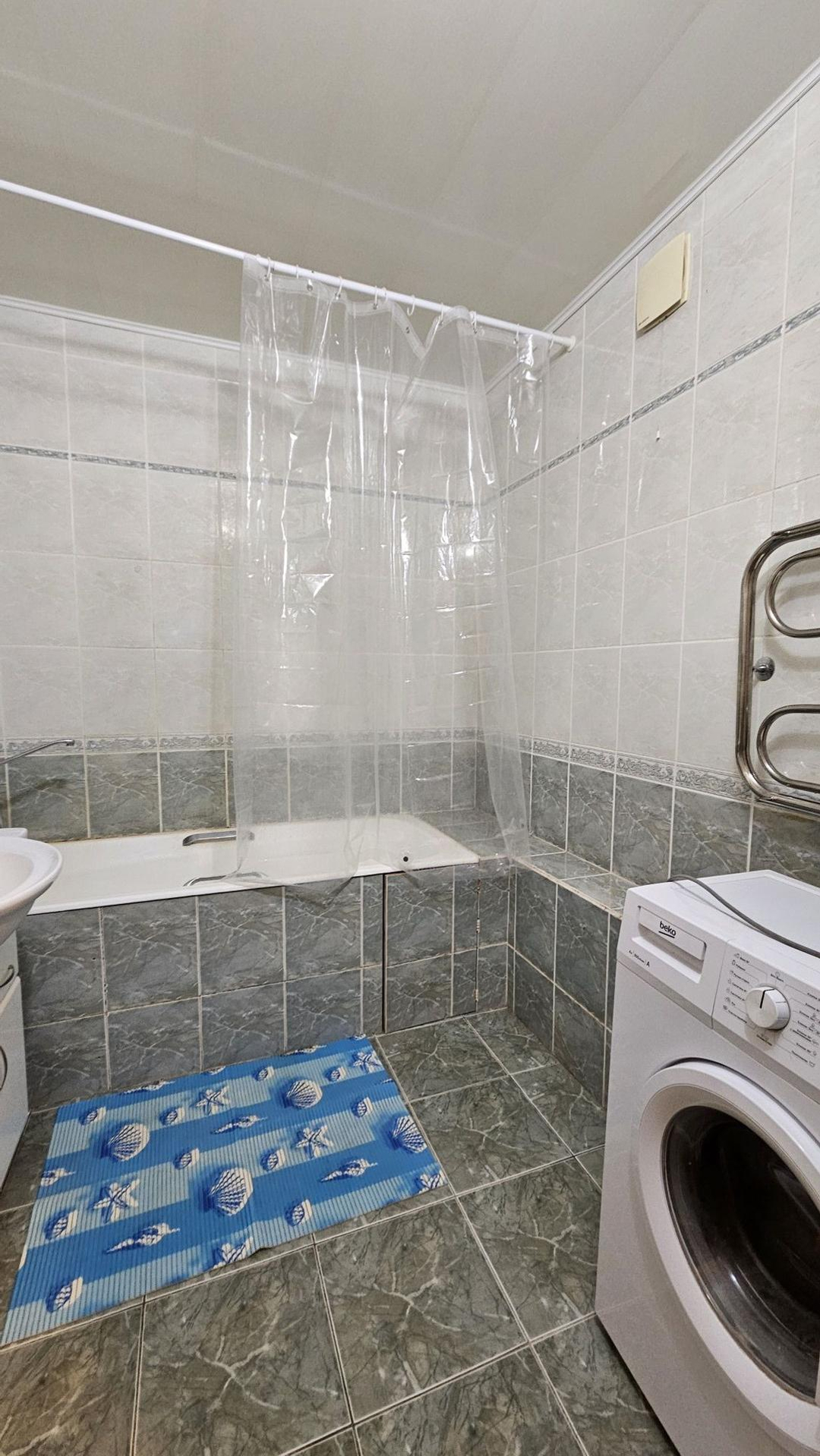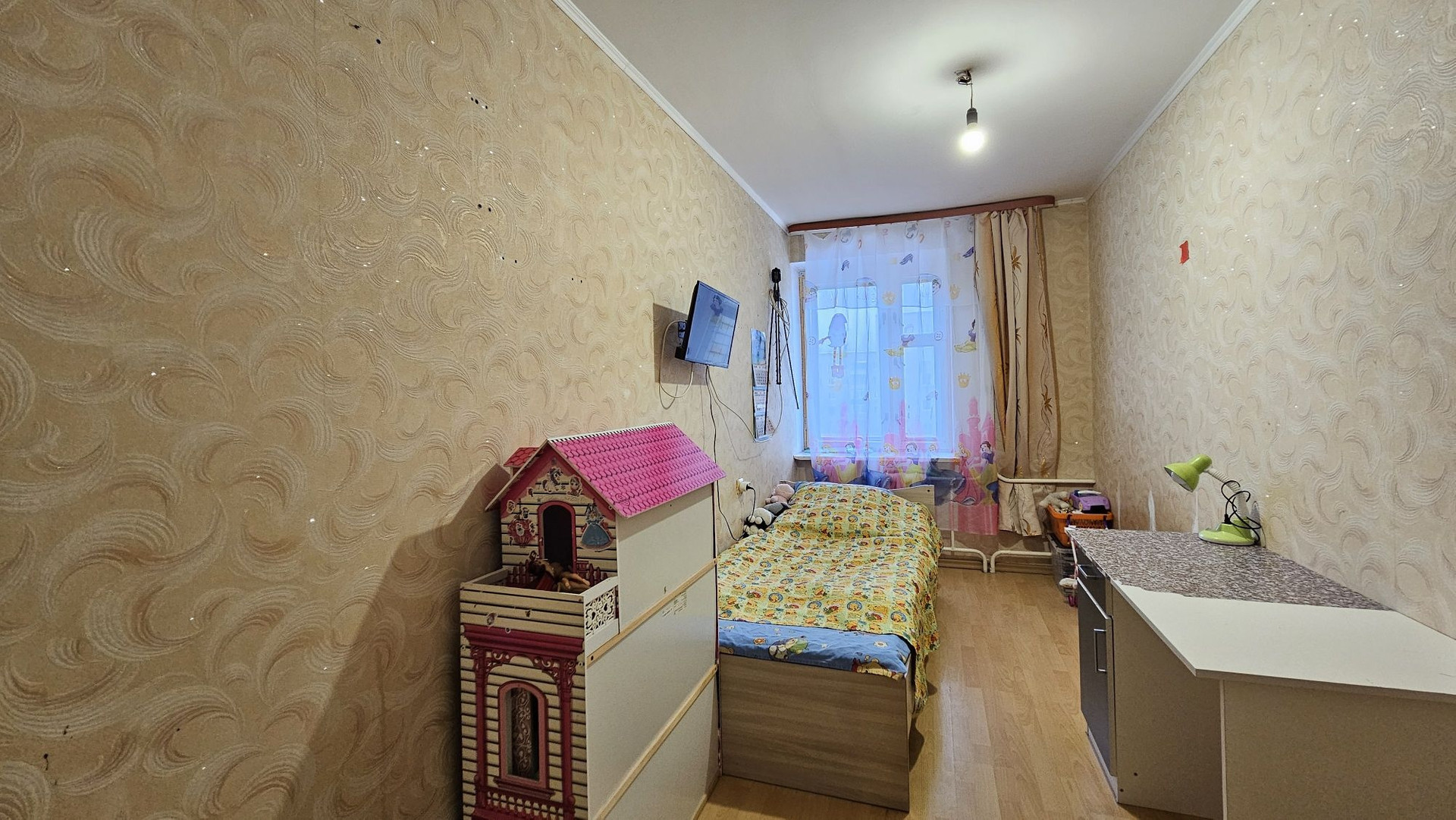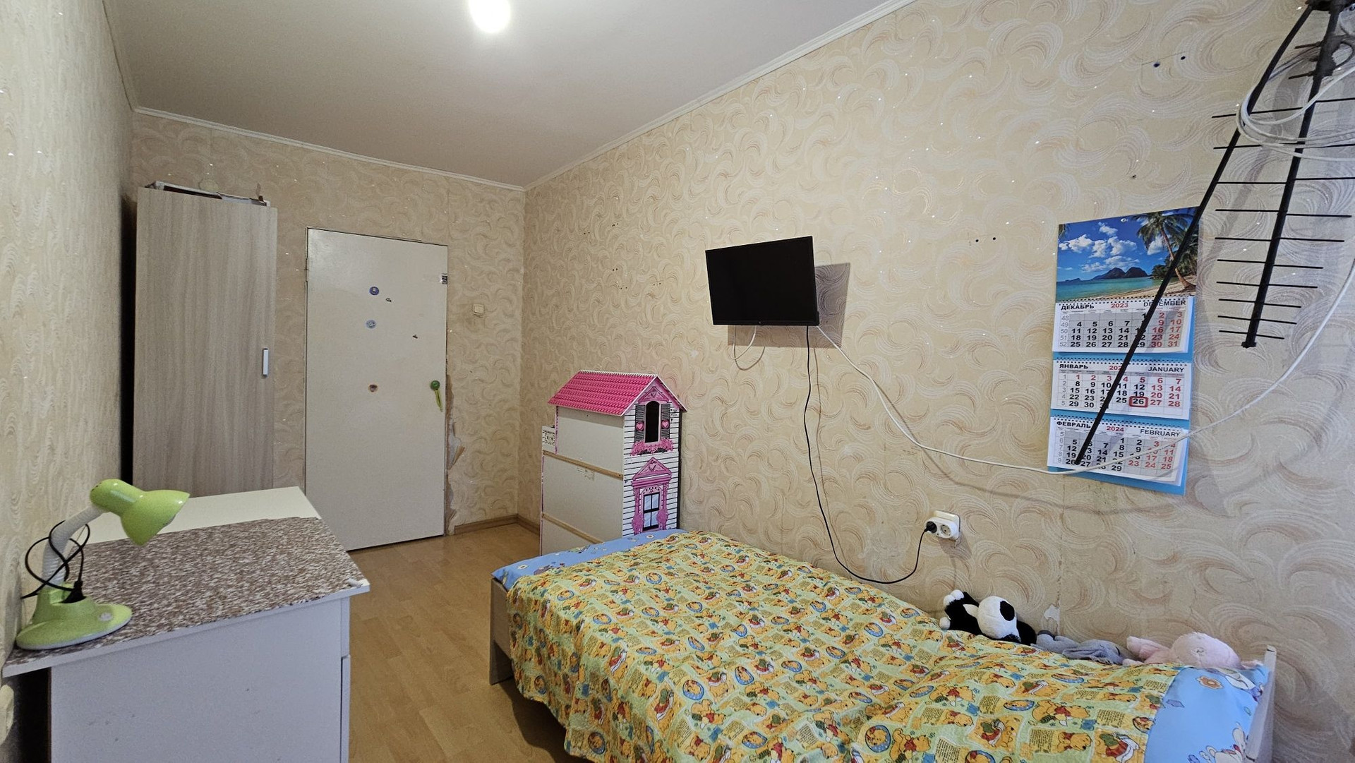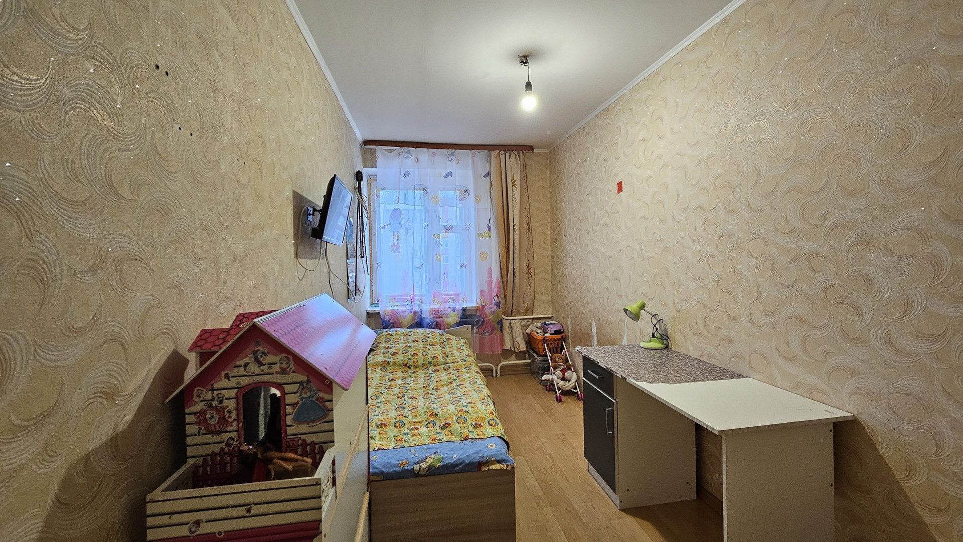 В квартире остался кухонный гарнитур, шкаф, диван. Бытовая техника: холодильник, стиральная машина. При желании можно совместить кухню с комнатой и у Вас получится просторная кухня-гостинная.
