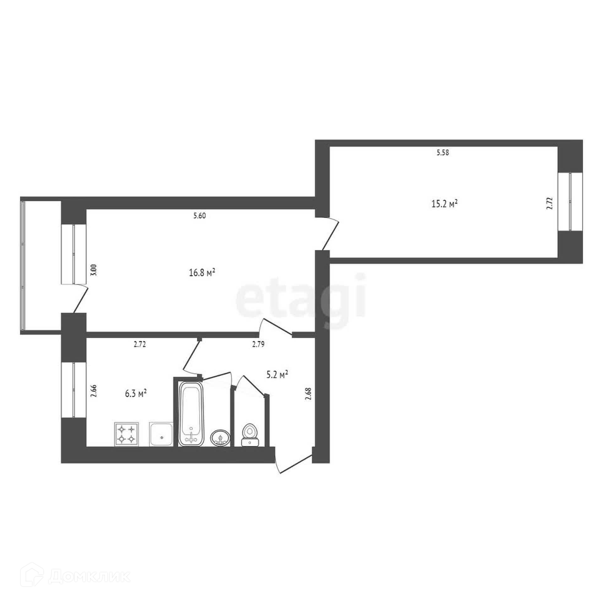Общая площадь 46.2 м2