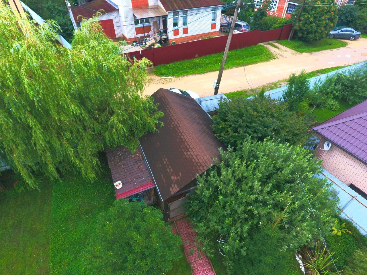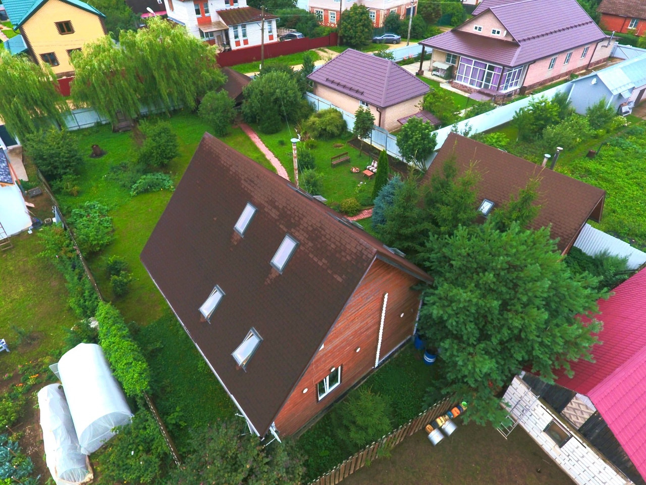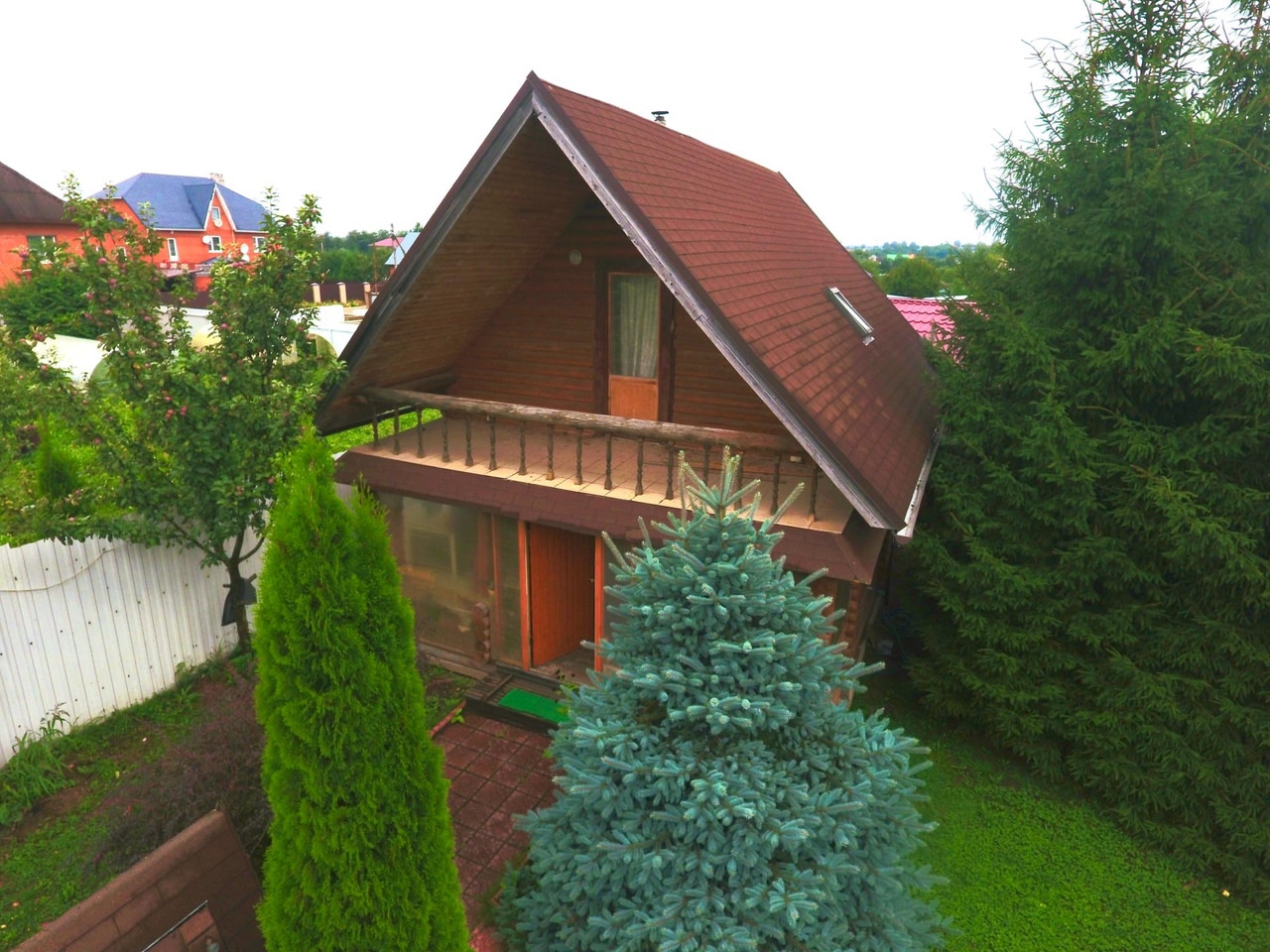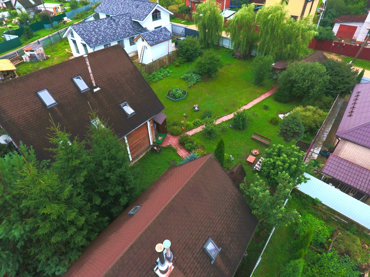 Засеян газоном, на участке зона отдыха с костровой зоной, качели, много красивых деревьев: Туи, голубая ель. На участке так же имеется гараж под один автомобиль.