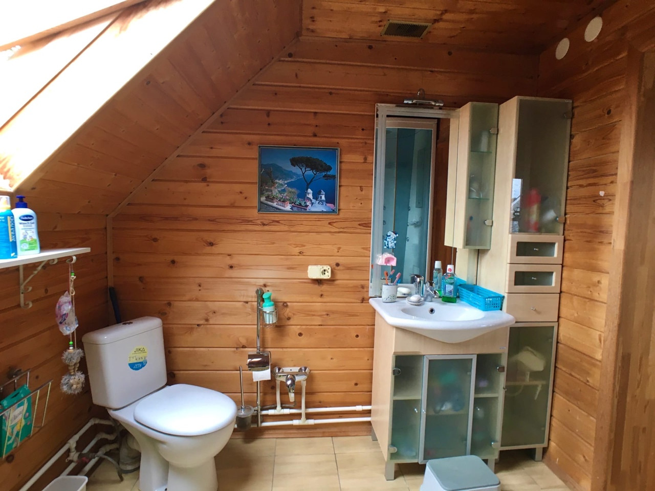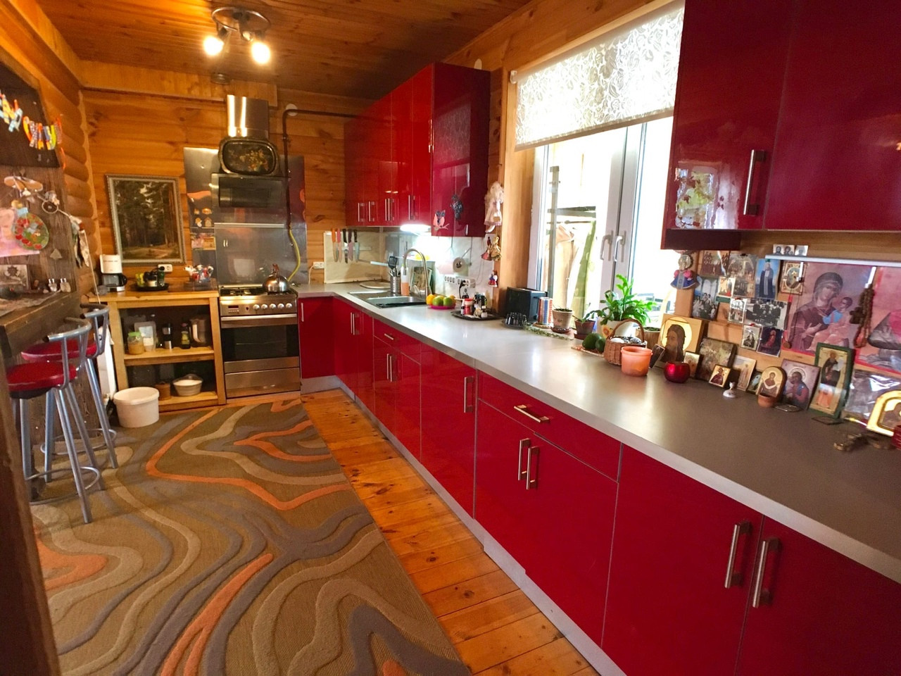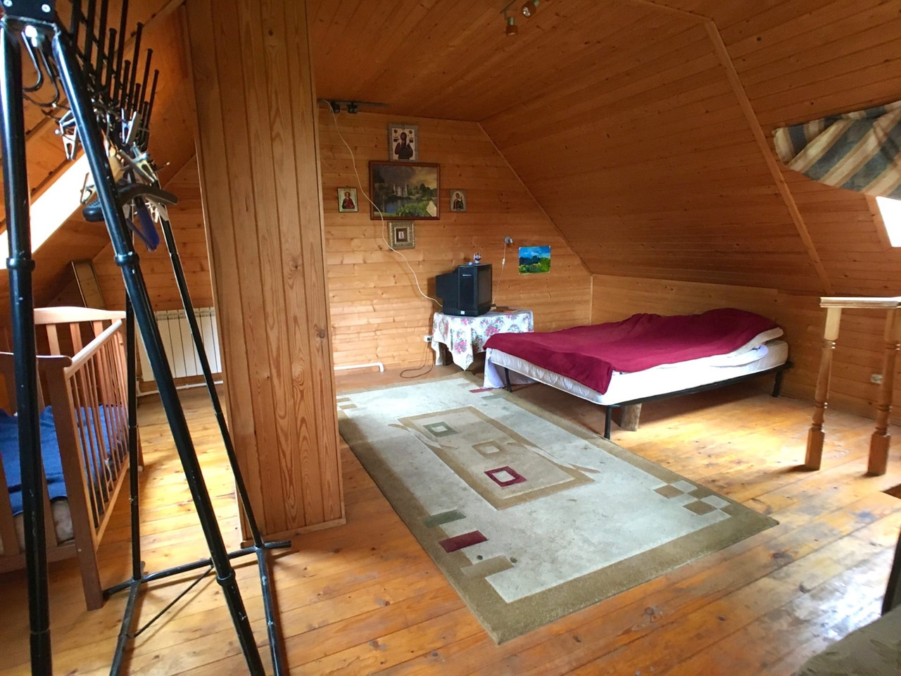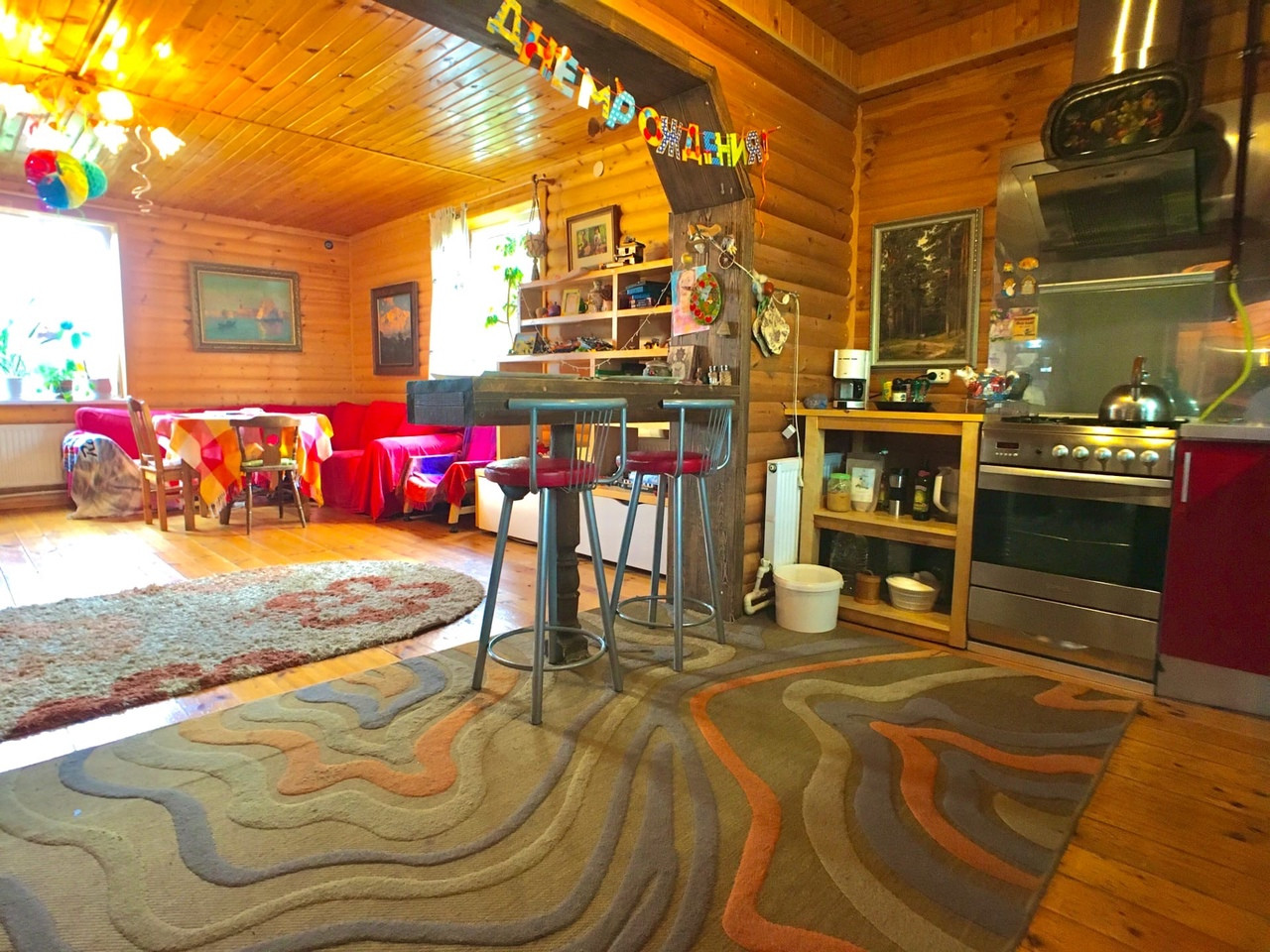 Газифицирован, отопление от газового котла. Имеет 2 Этажа, на 1 этаже при входе мастерская и дровник, так же на 1 этаже гостиная, большой санузел, парилка, печка на дровах. Второй этаж единая большая мансардная комната и балкон. Так же вся Мебель остаётся.