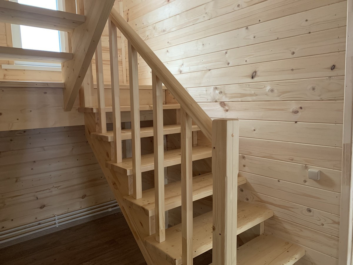Первый этаж: крыльцо-терраса (часть которого занимает котельная), прихожая, кухня - зал с лестницей на второй этаж и выходом на просторную веранду, с/у полностью оборудован, стены отделаны пластиковыми панелями), отдельная комната. На втором этаже 3 комнаты, холл и санузел.