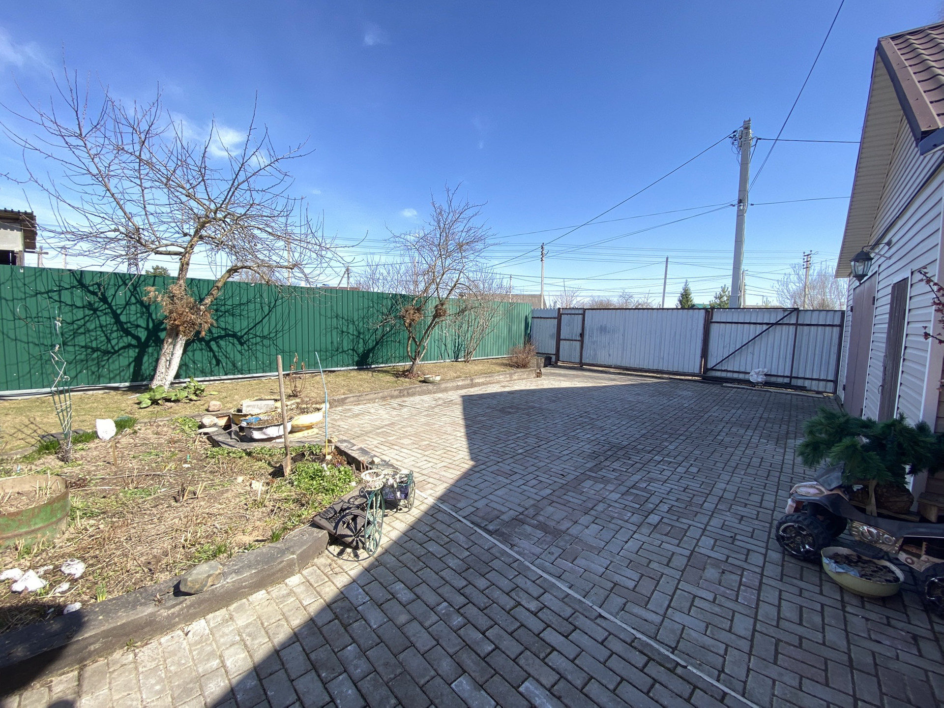 На участке есть гараж с навесом и хоз.блоком , теплица, детский домик, бытовка.