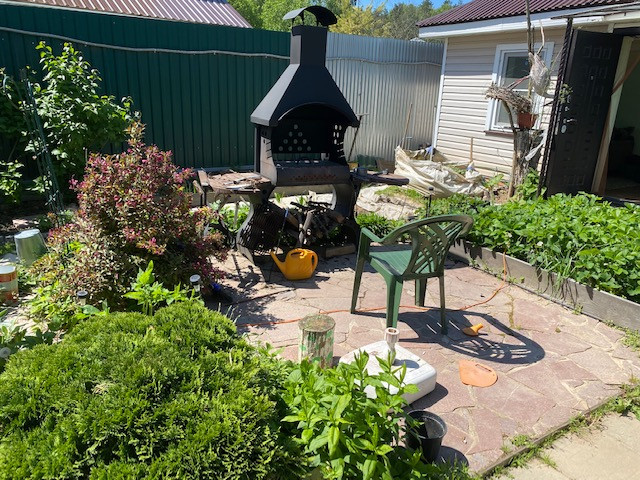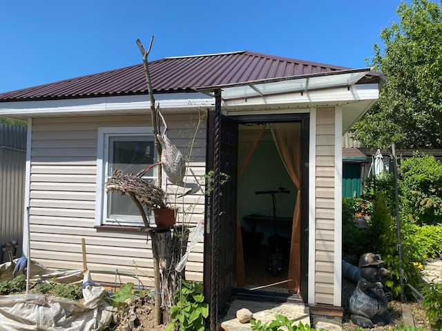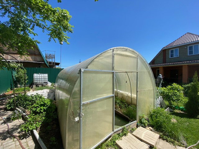 На участке есть гараж с навесом и хоз.блоком , теплица, детский домик, бытовка.