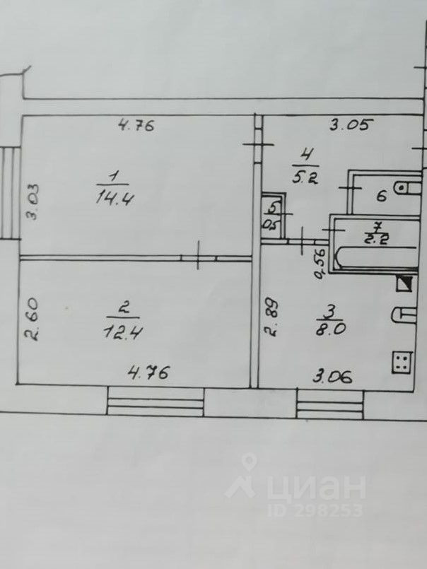 Общая площадь 43.8 м2