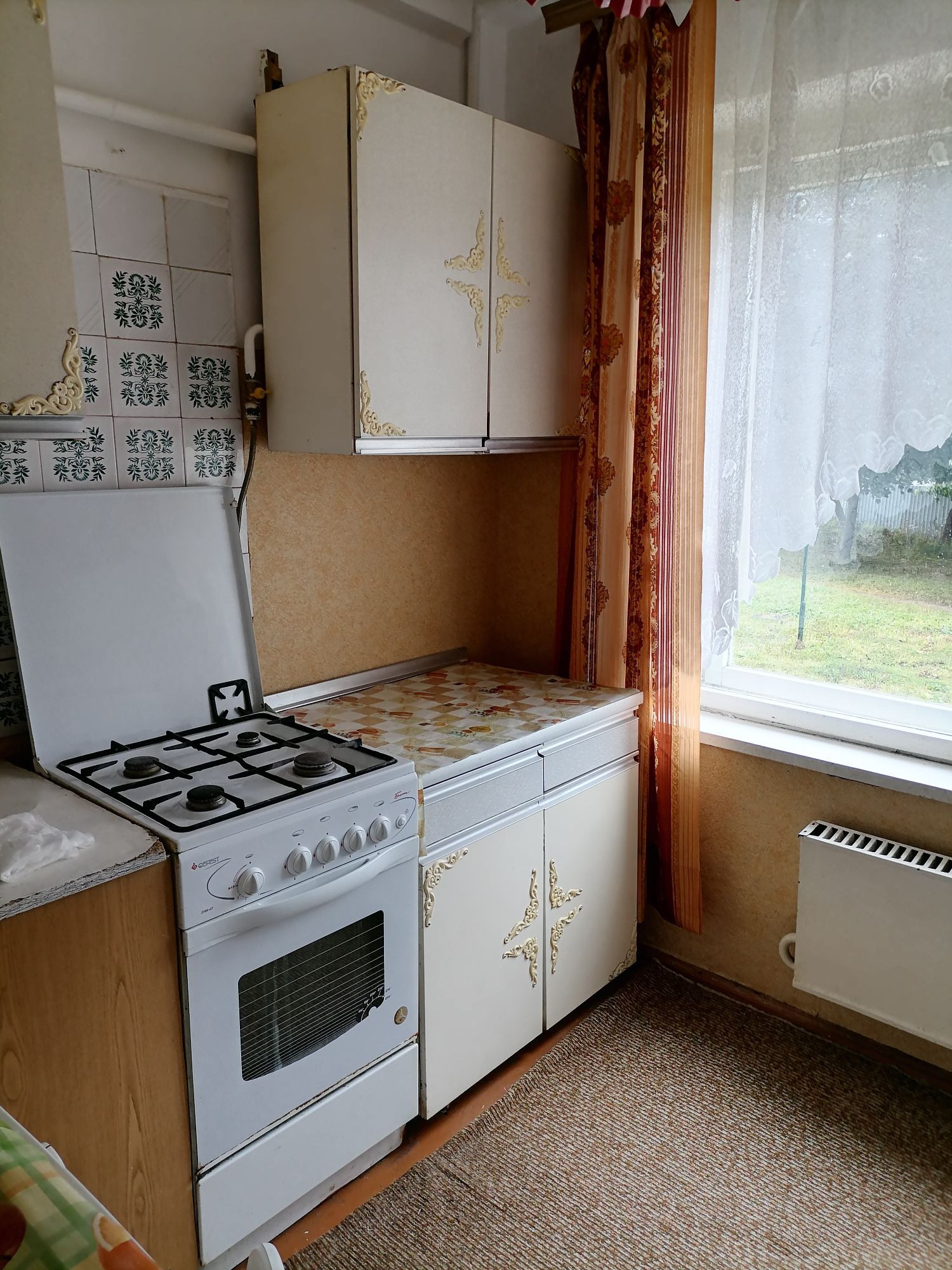 Квартира теплая, светлая, солнечная. Большая комната, кухня 7 м, санузел совмещён, без балкона.