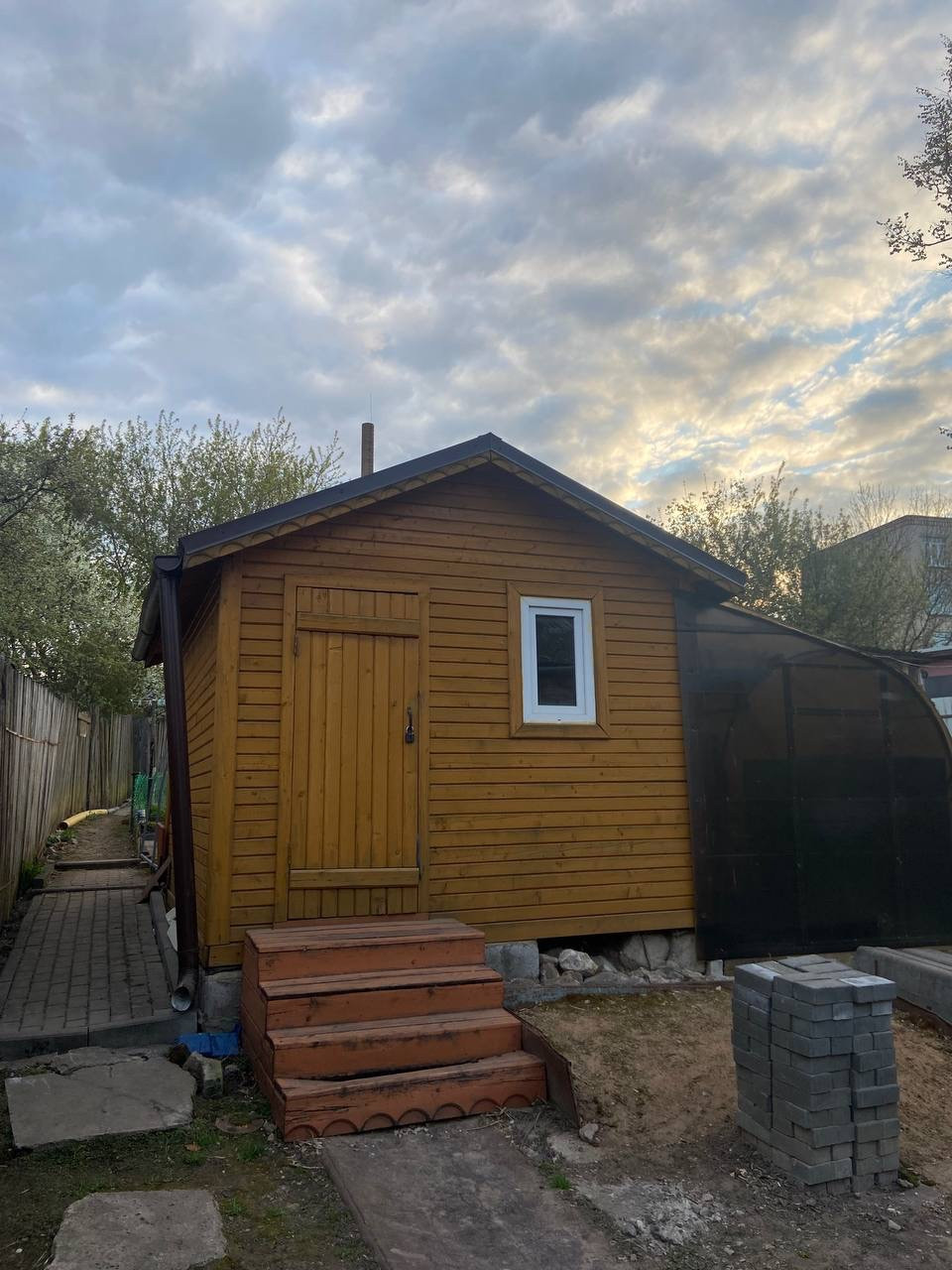 Рядом с домом есть участок, небольшая площадка с навесом, огород, цветник, есть место для мангала