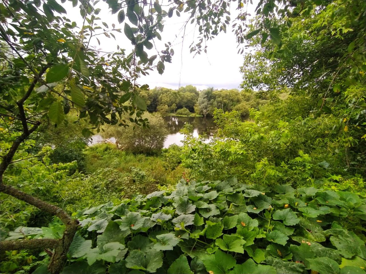 Участок находится на высоком обрыве над рекой Протвой ( не затапливается никогда).