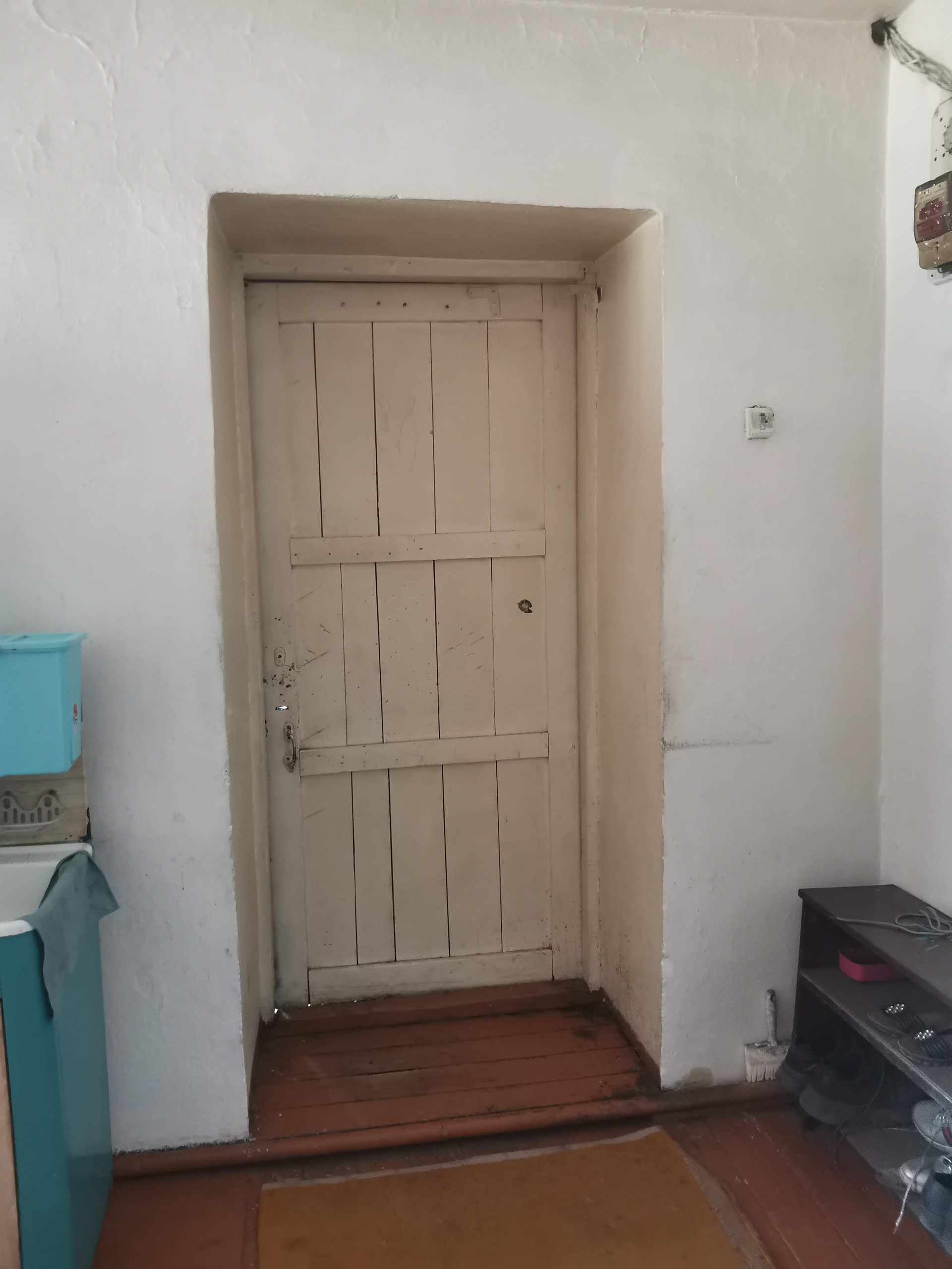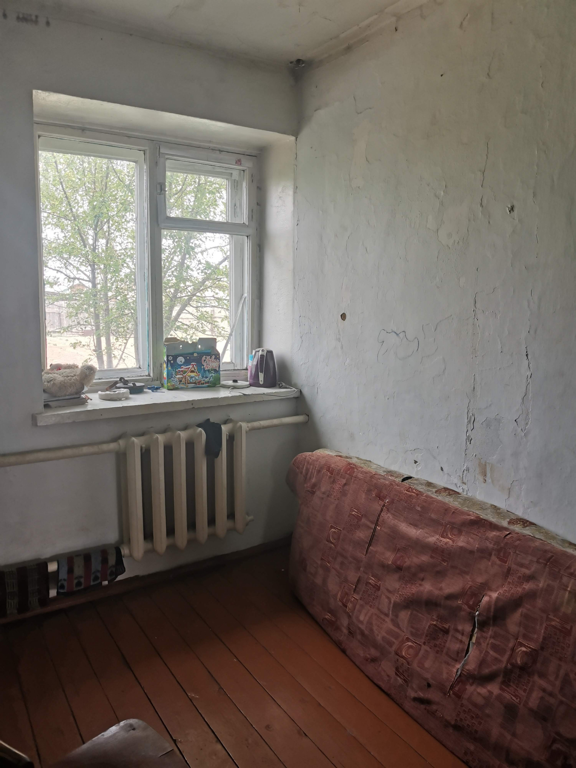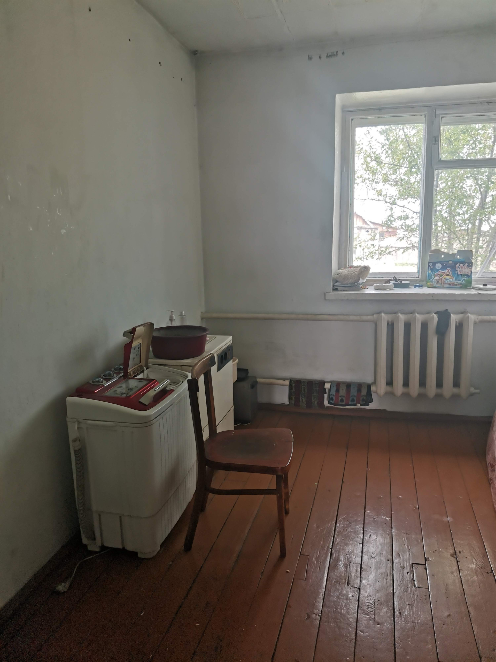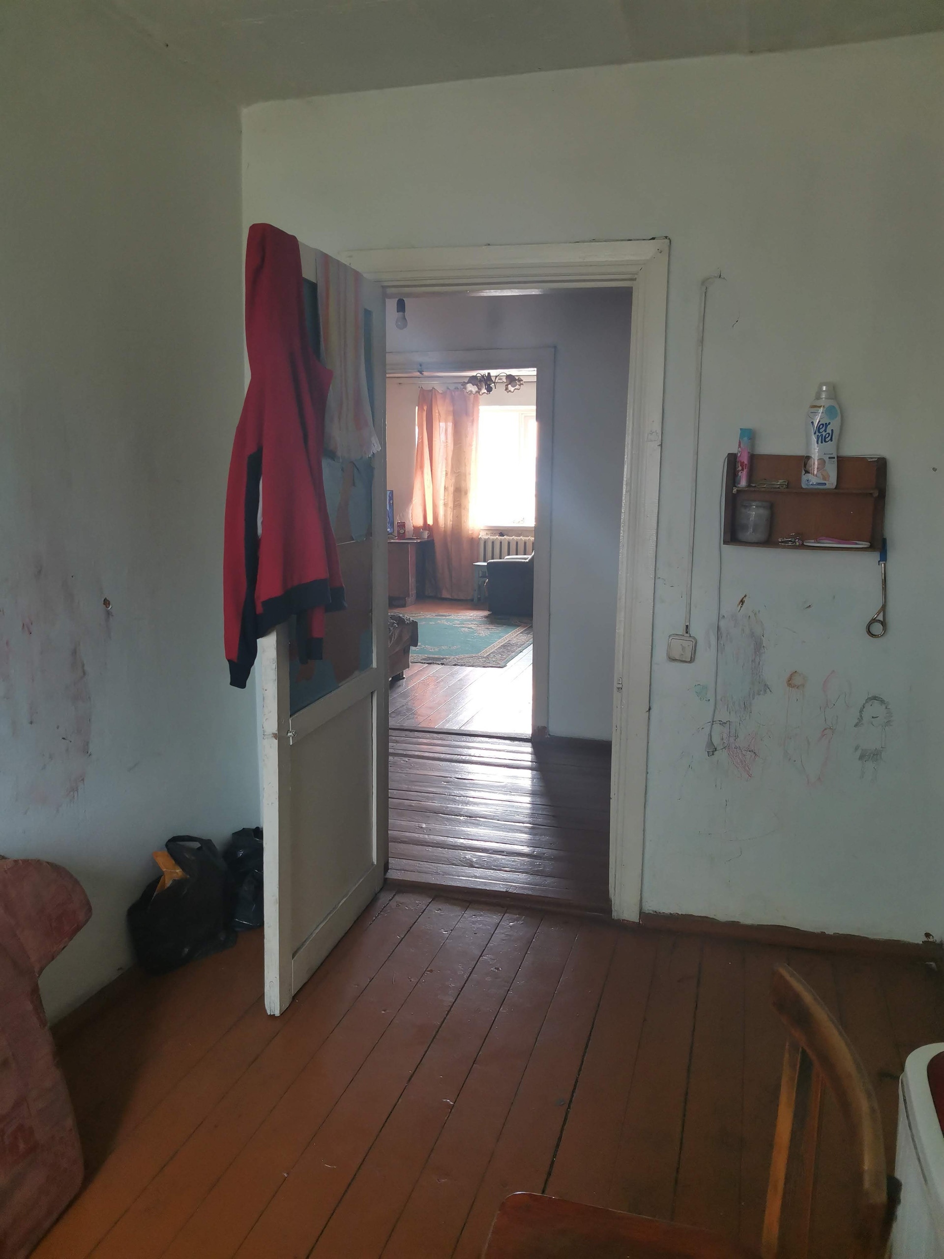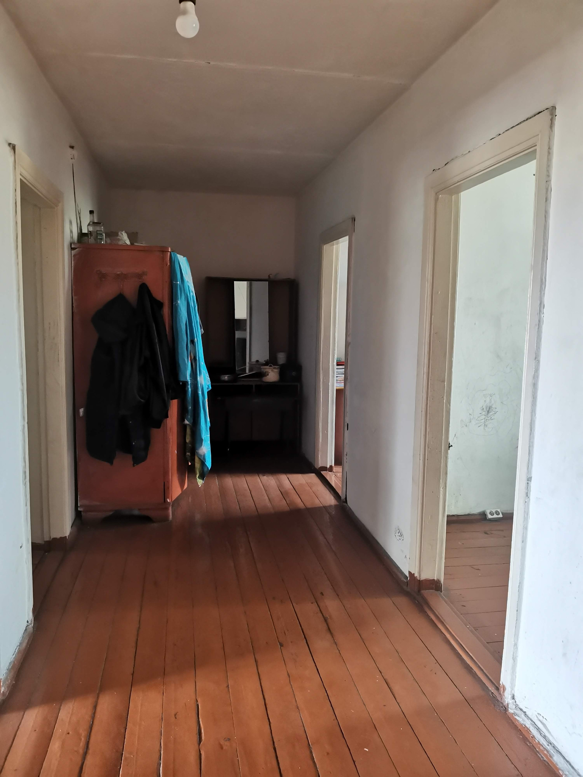 Неблагоустроенная четырехкомнатная квартира расположена на земельном участке площадью 11 соток. На участке имеется скважина, баня, уличный туалет.
