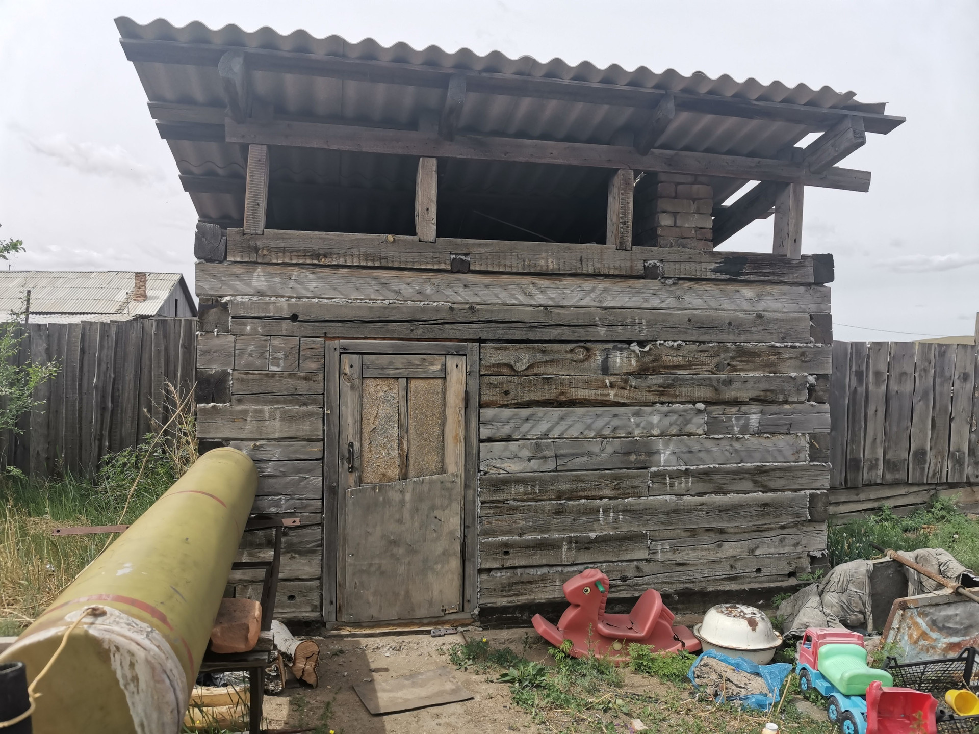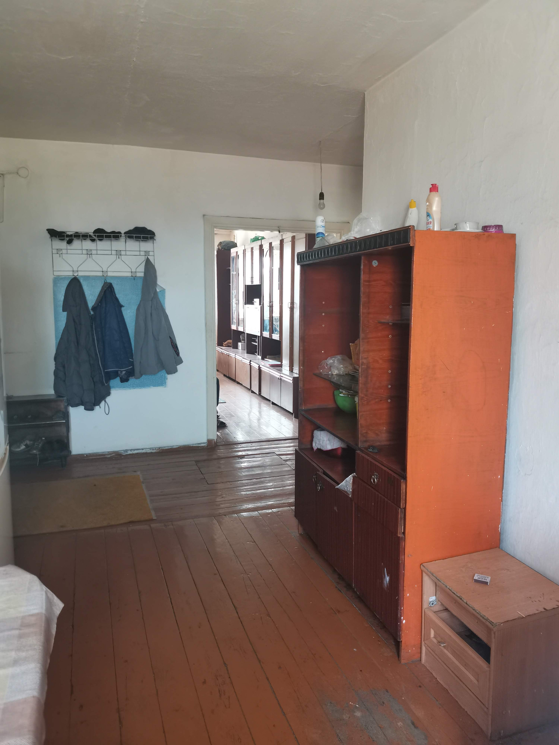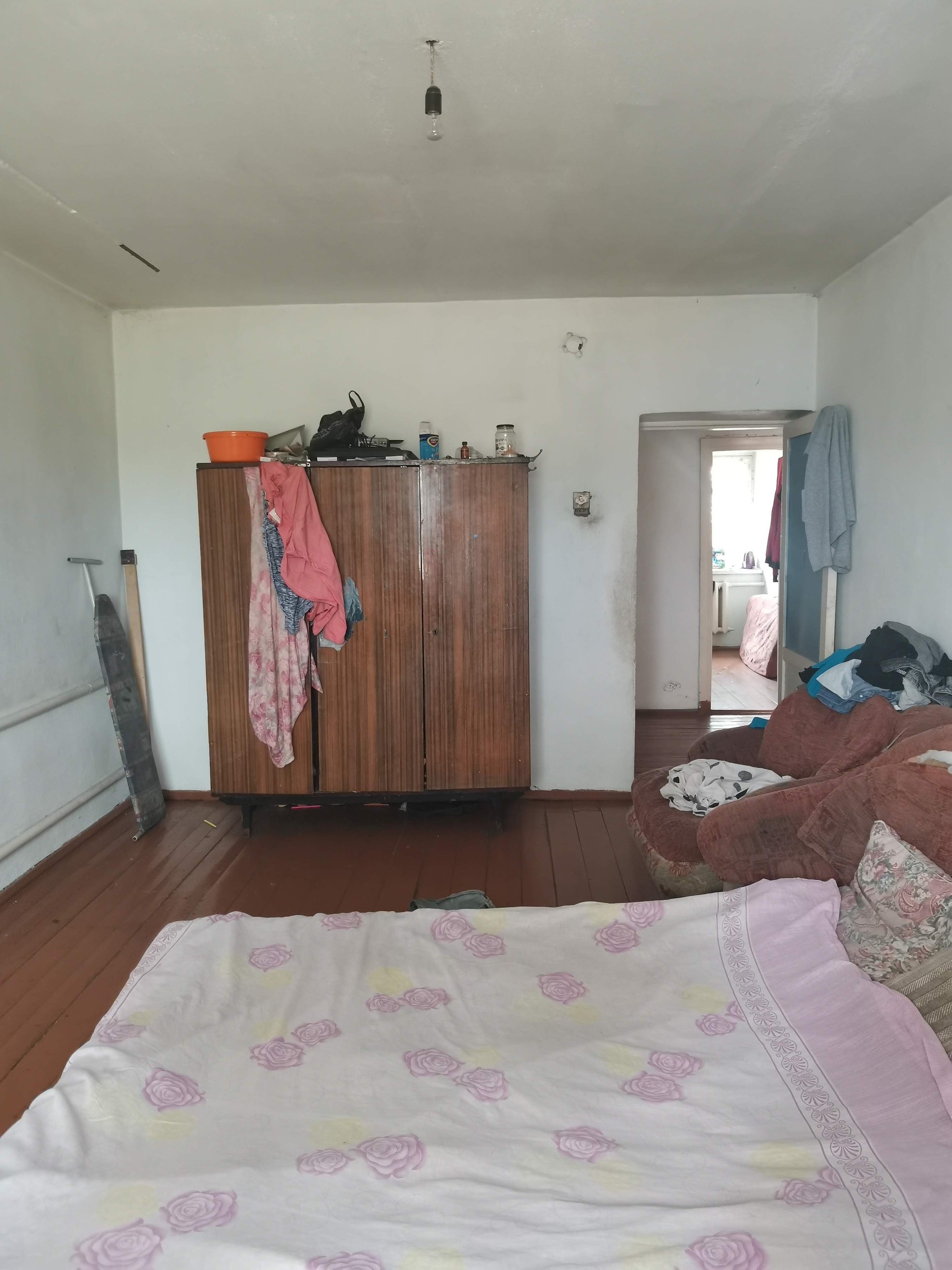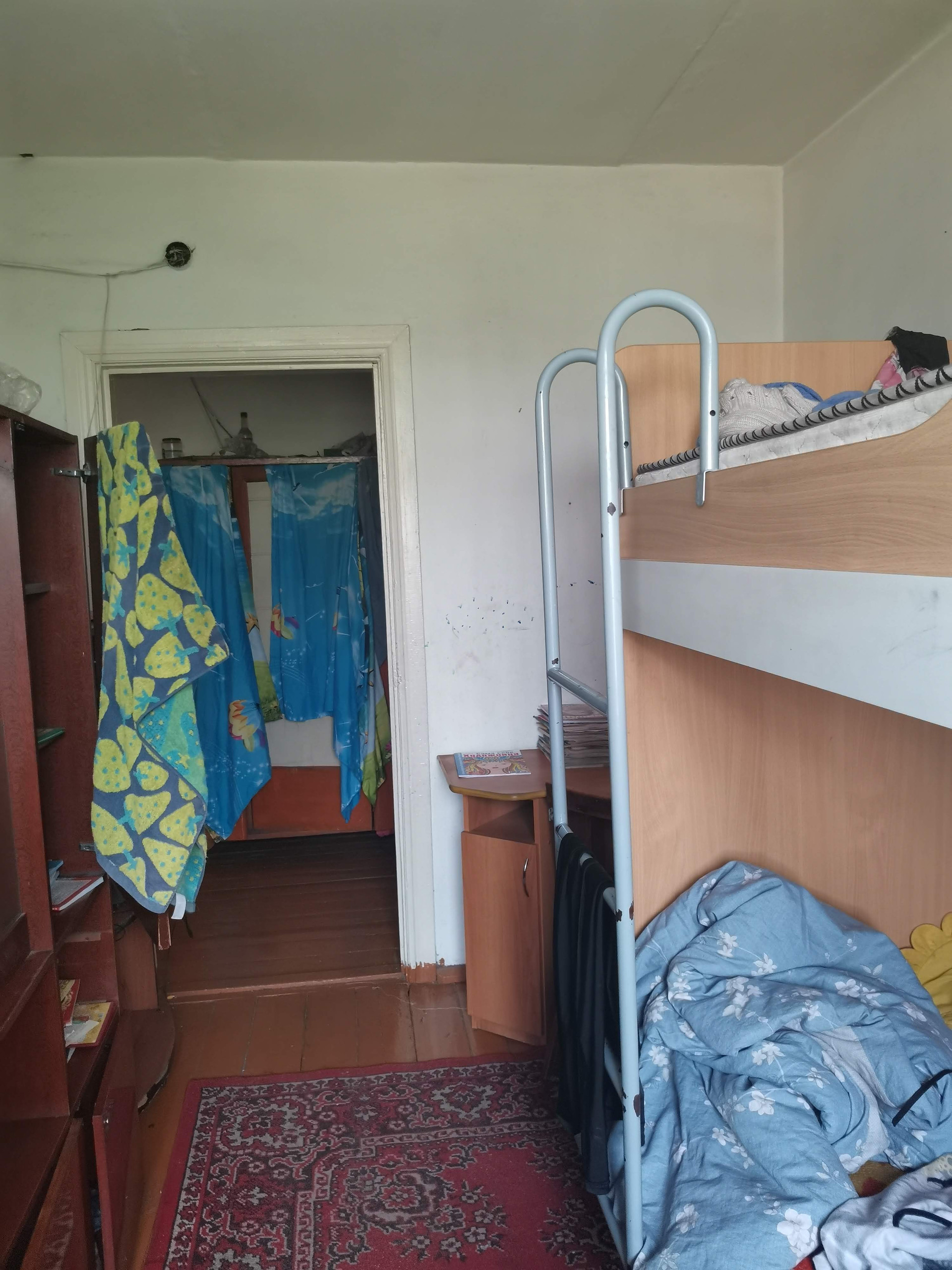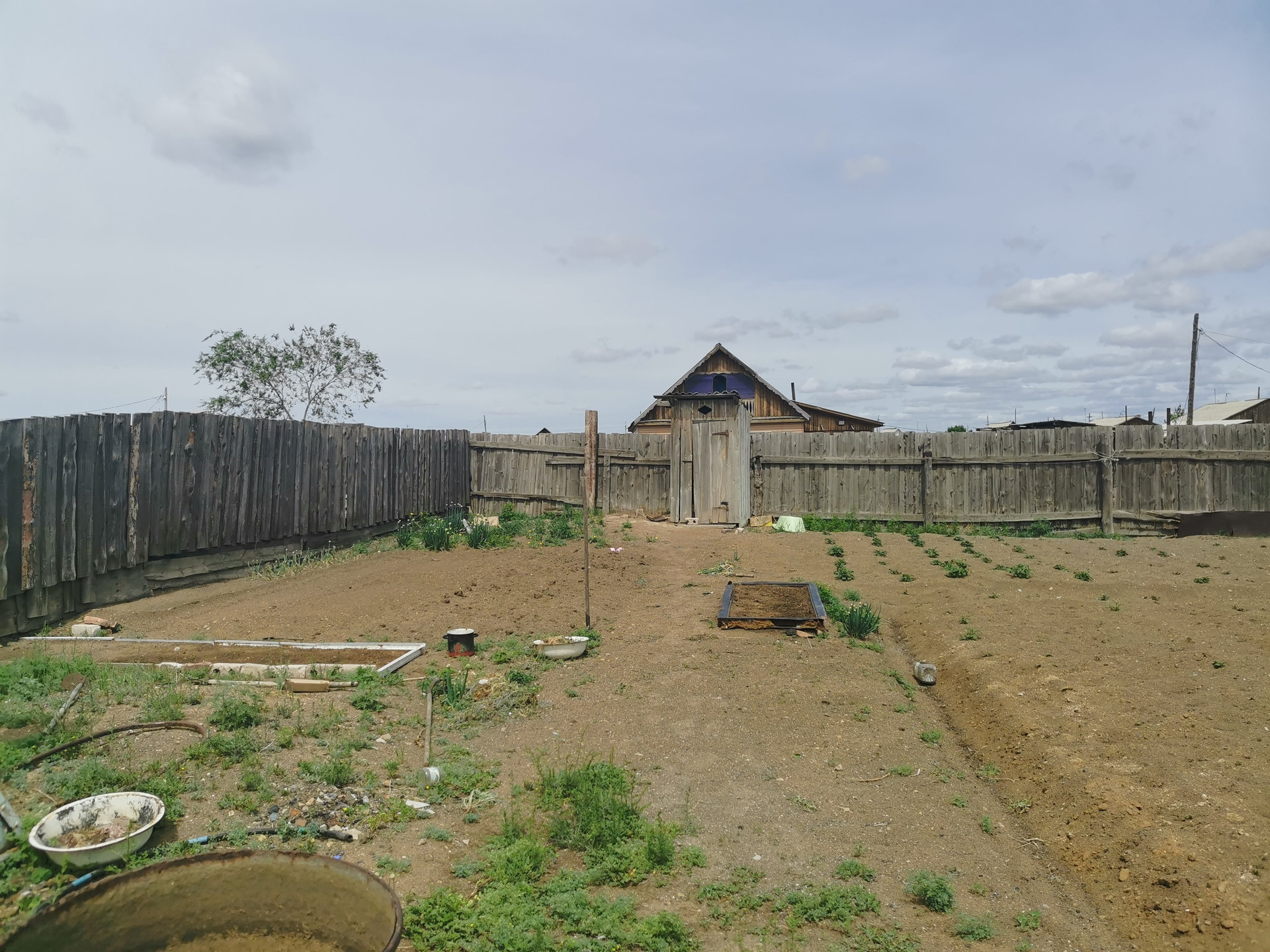 Неблагоустроенная четырехкомнатная квартира расположена на земельном участке площадью 11 соток. На участке имеется скважина, баня, уличный туалет.