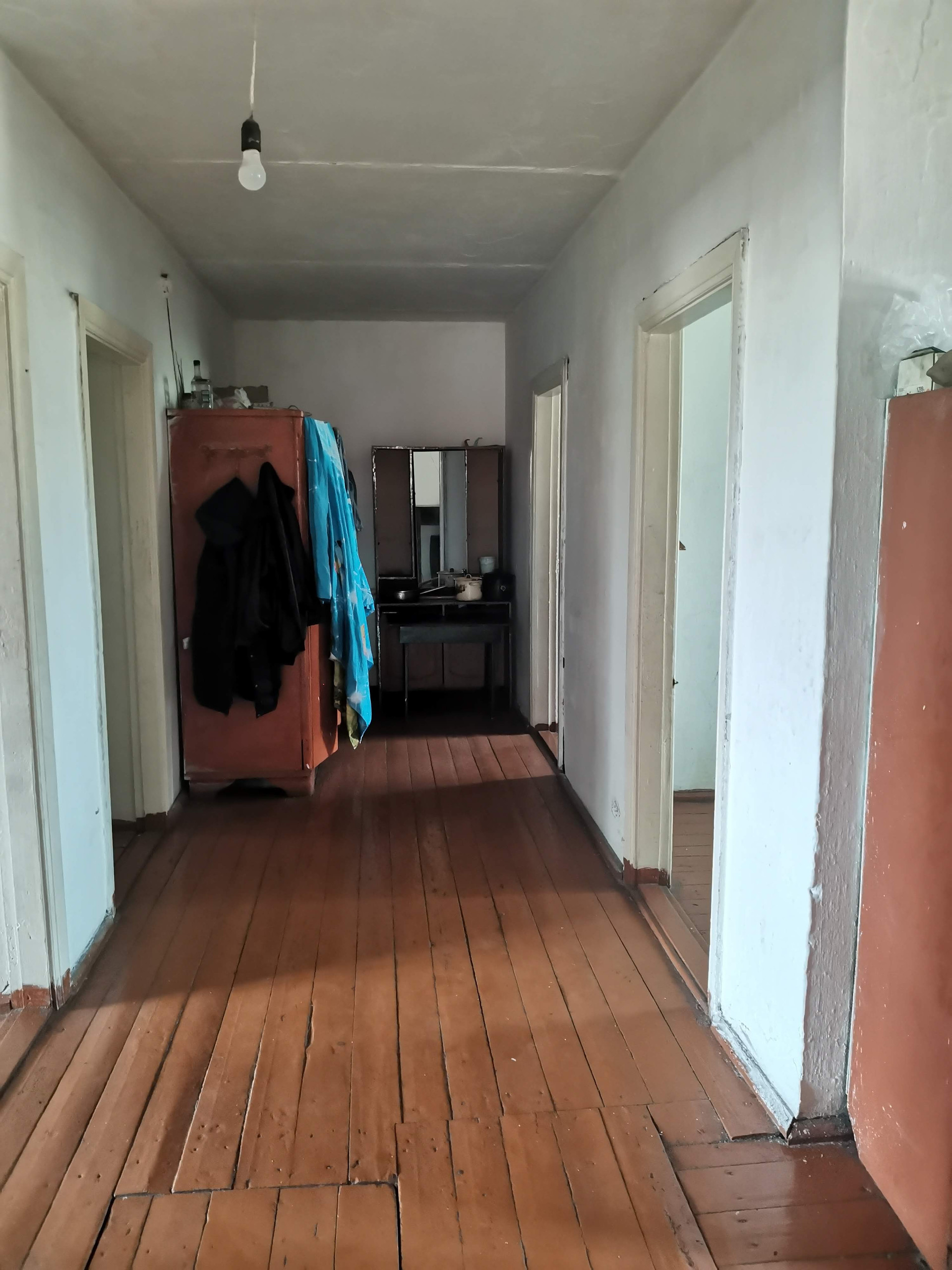 Все комнаты изолированные, автономное отопление: твердотопливный водяной котел, есть две холодные пристройки. Оконные заполнения: деревянные рамы, полы: доска, стены: штукатурка, побелка, потолки: ж/б перекрытия, побелка.