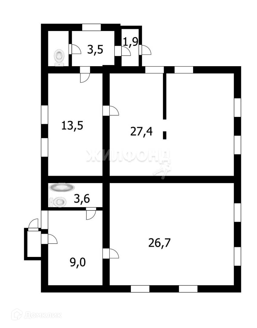 Жилая площадь 27.7 м2