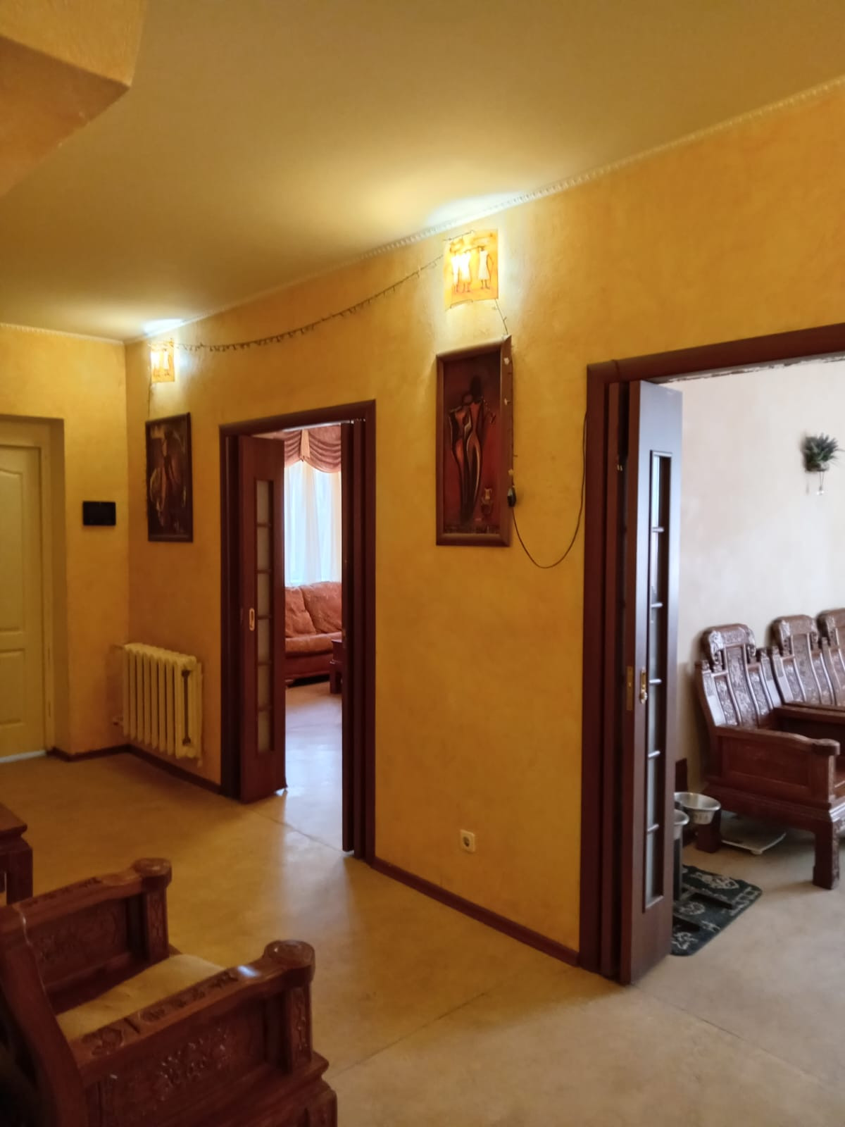 В доме 5 комнат, кухня с верандой, есть холодное помещение для хранения овощей. В доме остаётся всё, что есть, в том числе эксклюзивная натуральная мебель.