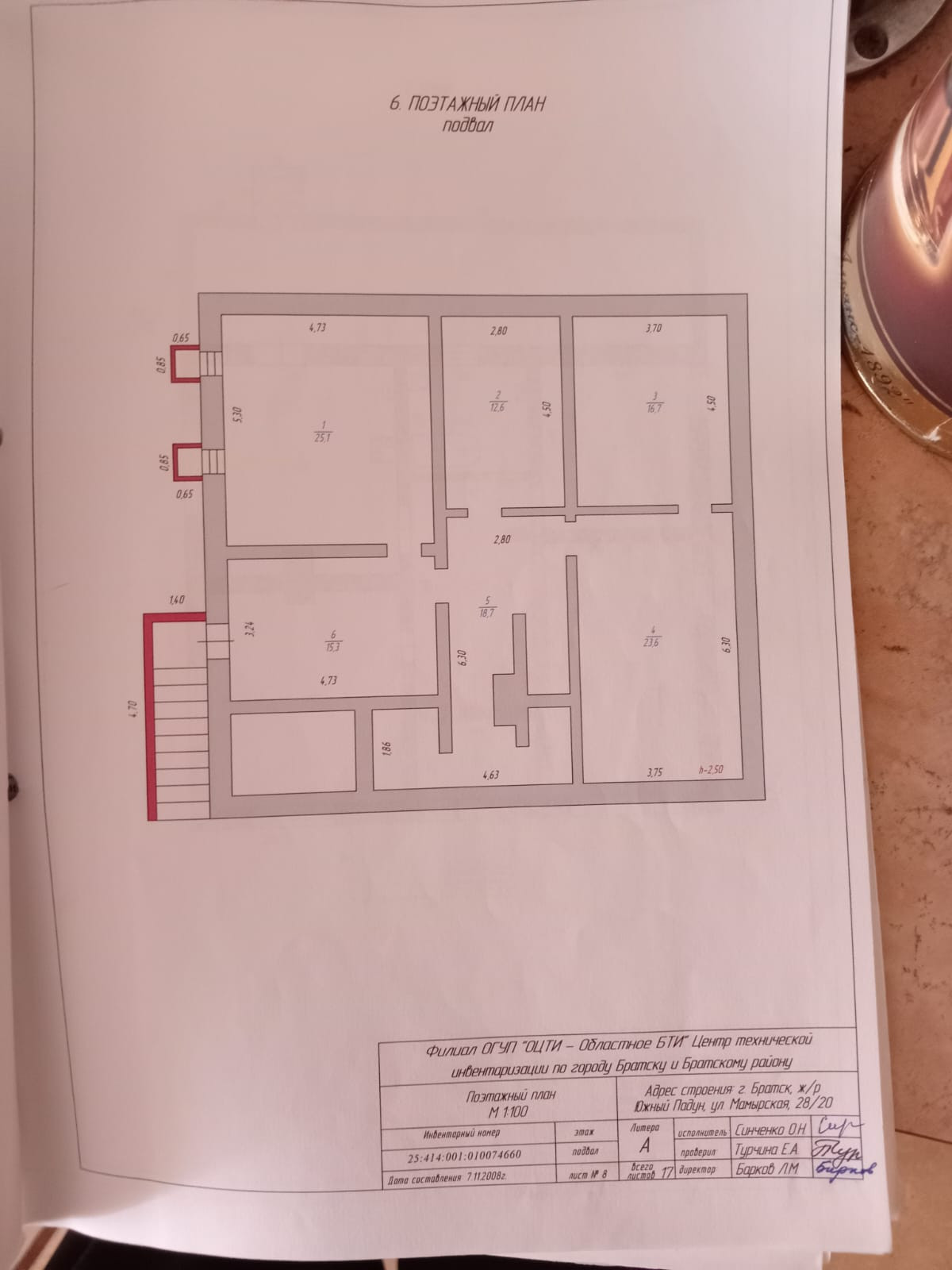 Дом полностью кирпичный, межкомнатные перегородки кирпичные, фундамент ленточный.