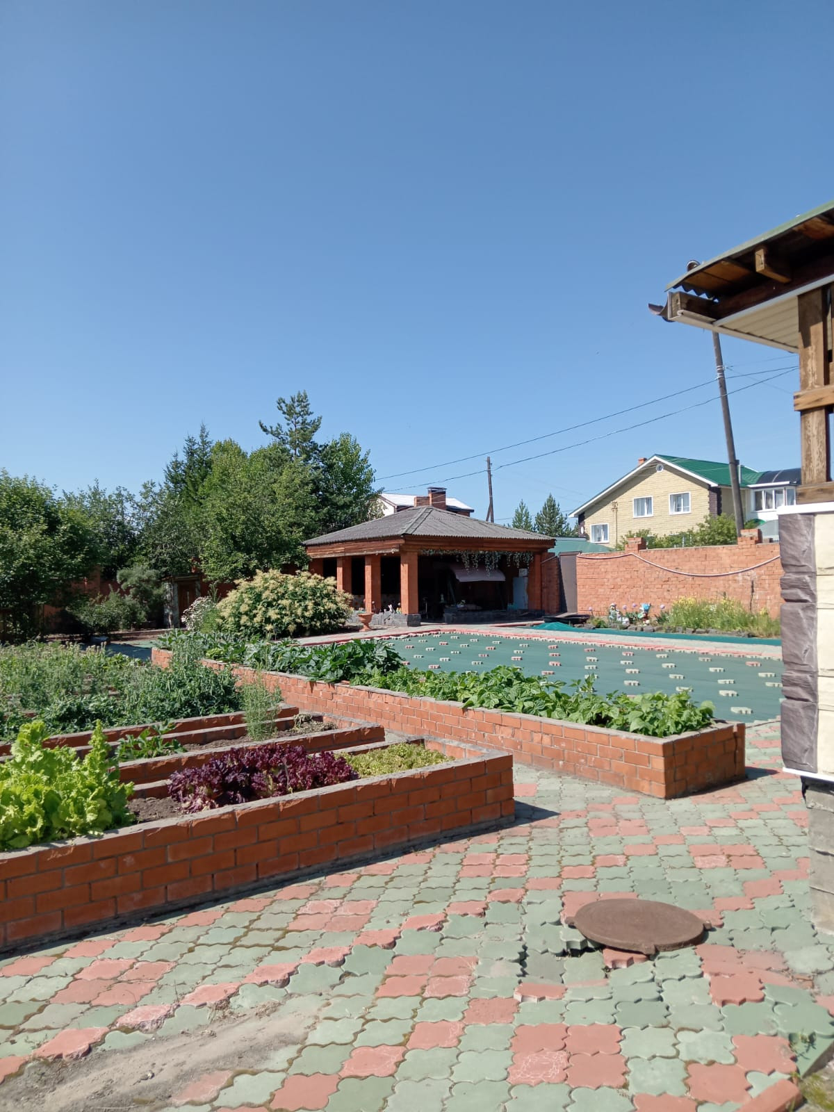 Территория участка 20 соток, есть 2-этажный гараж, своя детская площадка, капитальные грядки и теплицы, шикарная баня с подведенными канализацией и водоотведением, зона барбекю.