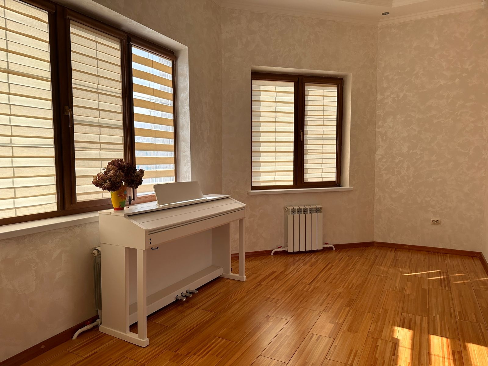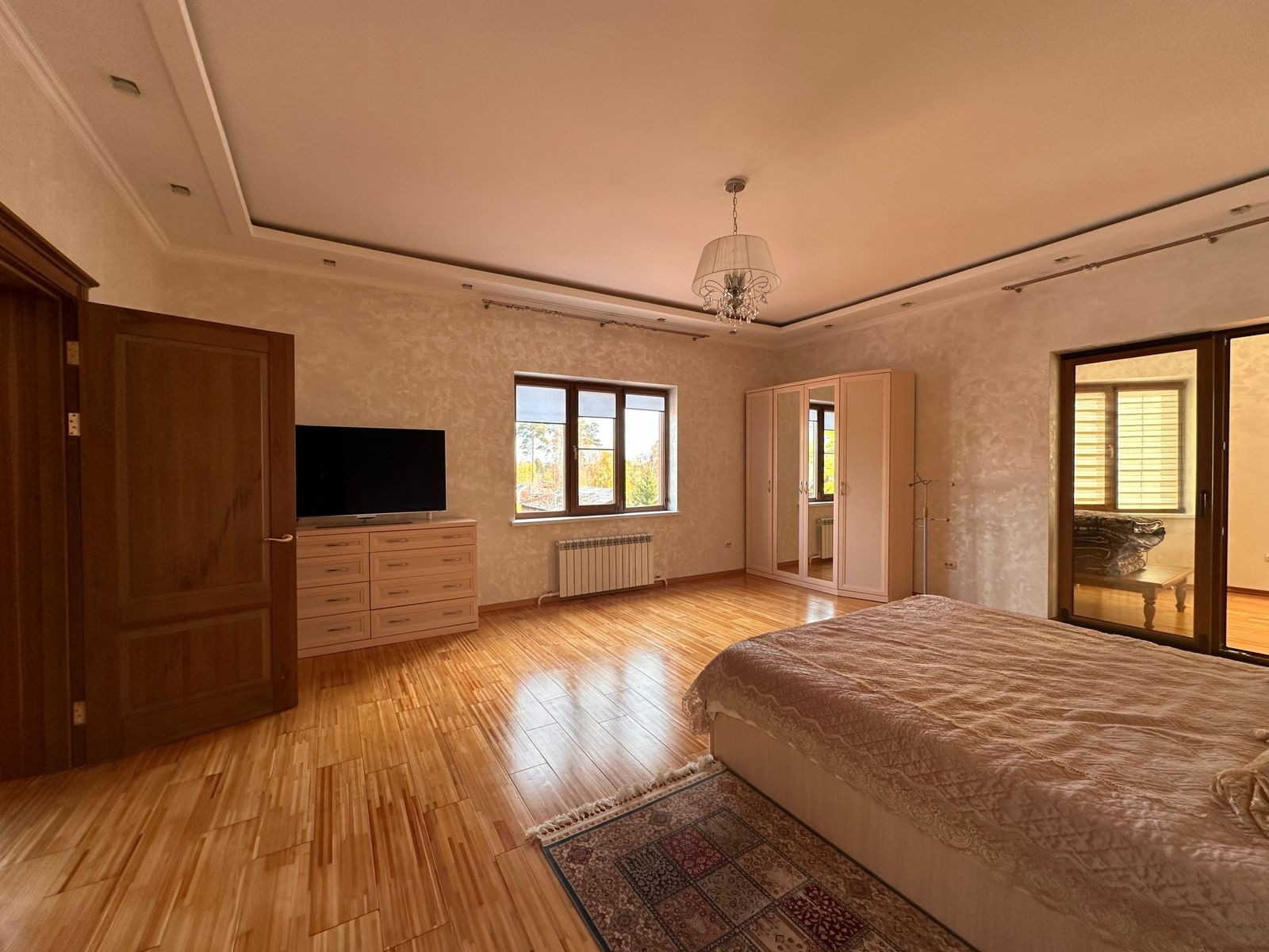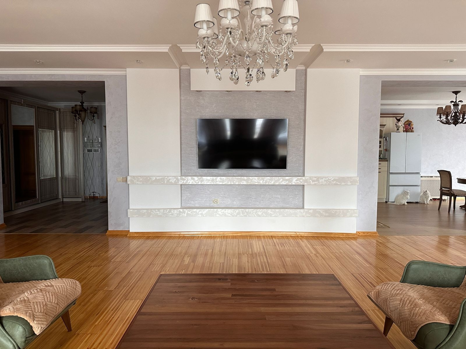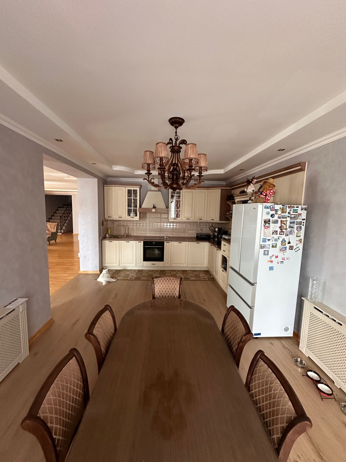 *Отдельное внимание просторной кухне- она мечта хозяйки (26,5 кв.м.) плавно переходящей в гостинную( 96 кв. м.) .Когда вся семья в сборе - Вам будет приятно проводить вечера в дружной атмосфере - заполнена теплом и светом, благодаря большим окнам. На этом островке уюта Вам будет приятно проводить семейные вечера ! Пол с подогревом,выложен лиственничной доской.Стены оформлены декоративной штукатуркой "Tikkurila",отлично выдерживает воздействие высокой температуры и влаги.