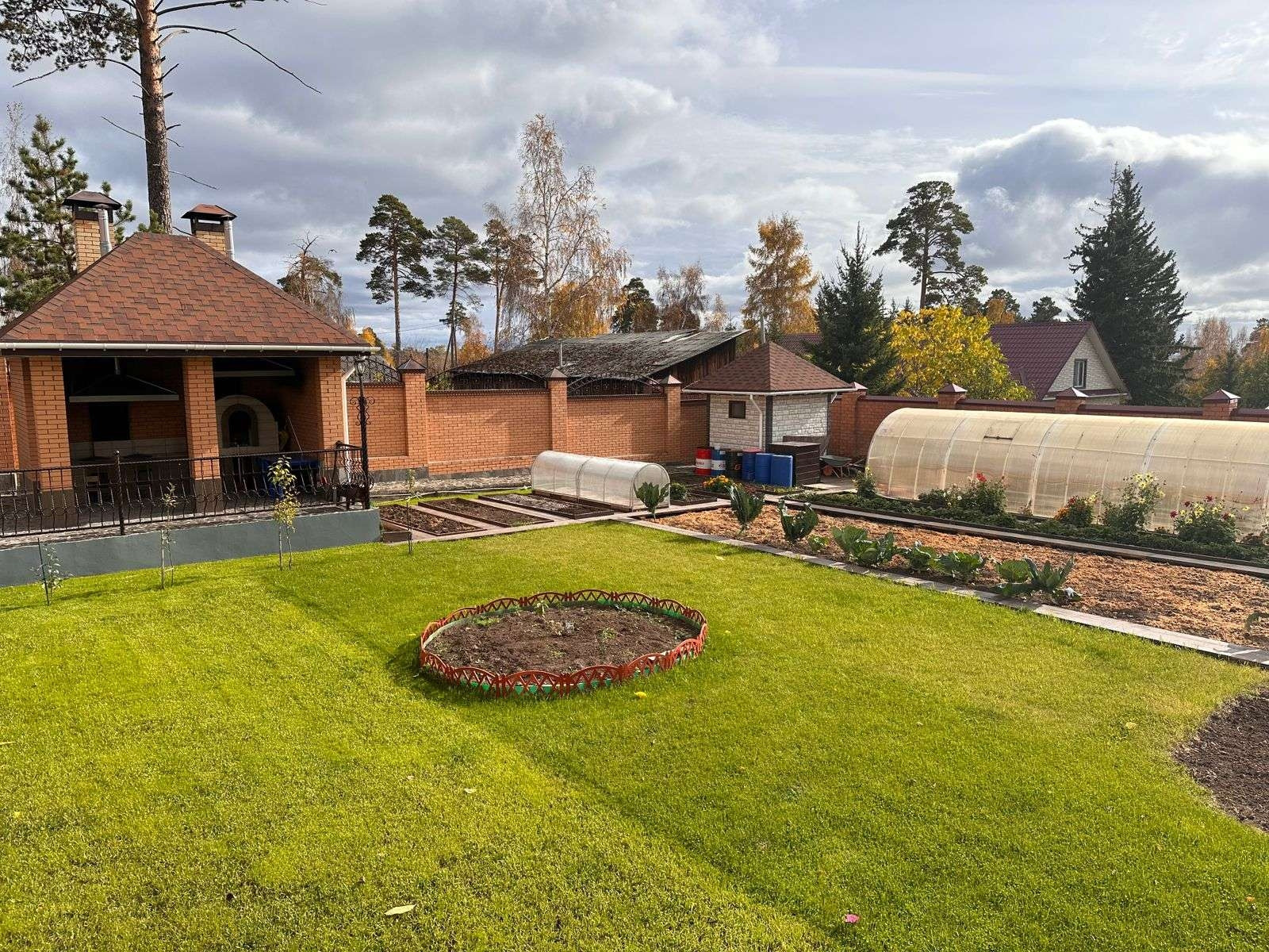 ✅ Насаждения: малина, смородина( красная черная),вишня, жимолость. слива,абрикосы, калина.В период цветения порадуют декоративные растения, барбарис, туи, пионы, сирень, хост.