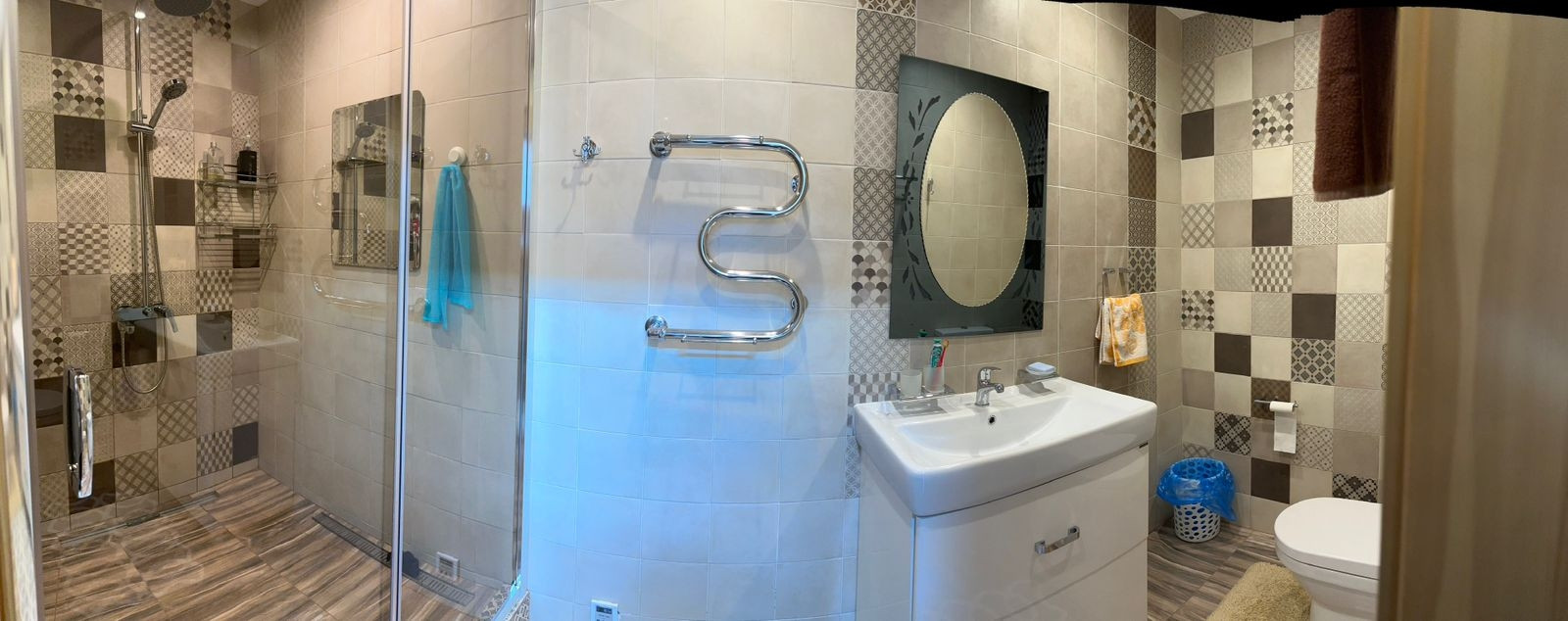 *сан/узел- современный, с душевым углом,пол с подогревом.