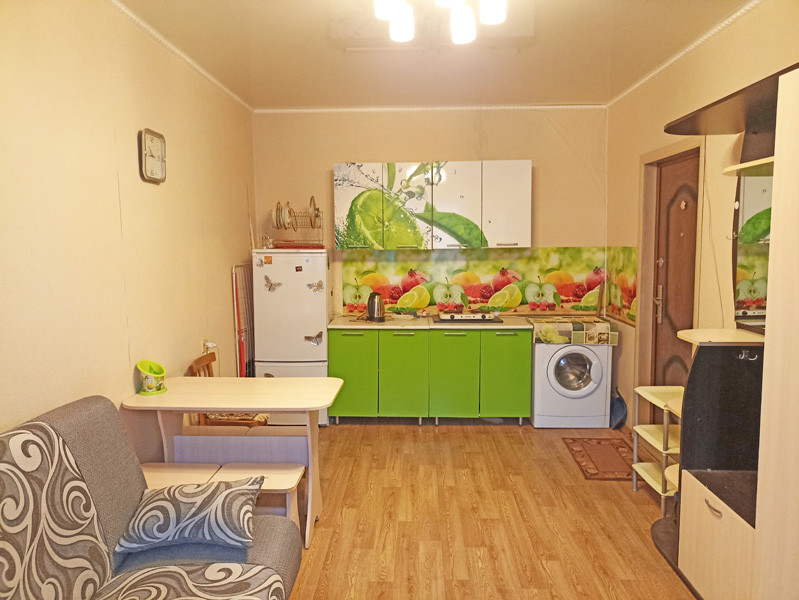 Заменена входная дверь, окно ПВХ, натяжной потолок, на полу линолеум. Остается вся мебель и бытовая техника, которые вы видите на фотографиях.