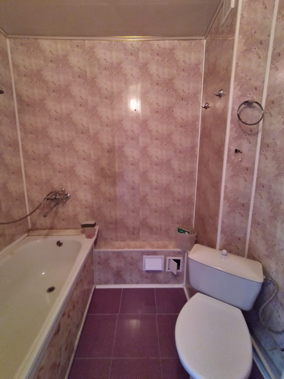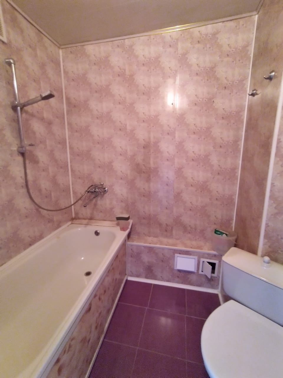 Ванна с с/узлом панели, на полу кафель.