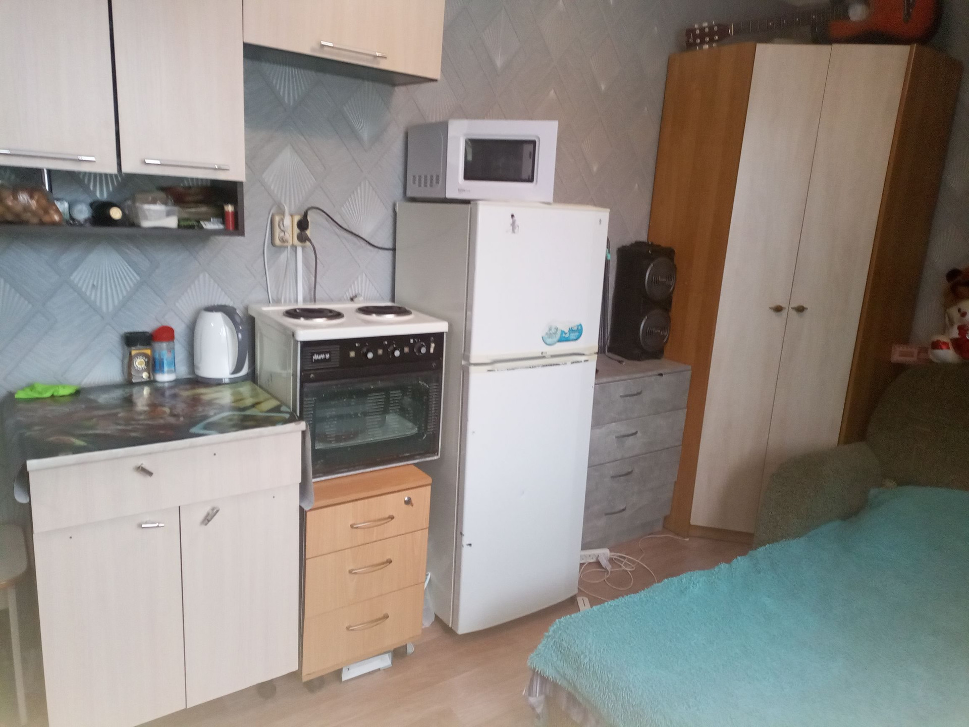 Продается теплая ,уютная студия с балконом. Окно пластиковое, замен, установлен новый душ , унитаз ,раковина, сантехника в санузле, входная дверь. Сделан свежий ремонт( есть немного царапины от кошки, но запас обой есть , подклеить). Тараканов и клопов нет. Соседи спокойные. В доме есть два лифта, консьерж. Отличная транспортная развязка, рядом рынок, Лента. Из мебели заберется: комод, стиральная машина, микроволновка, чайник и телевизор. Остальное все останется будущему хозяину.
