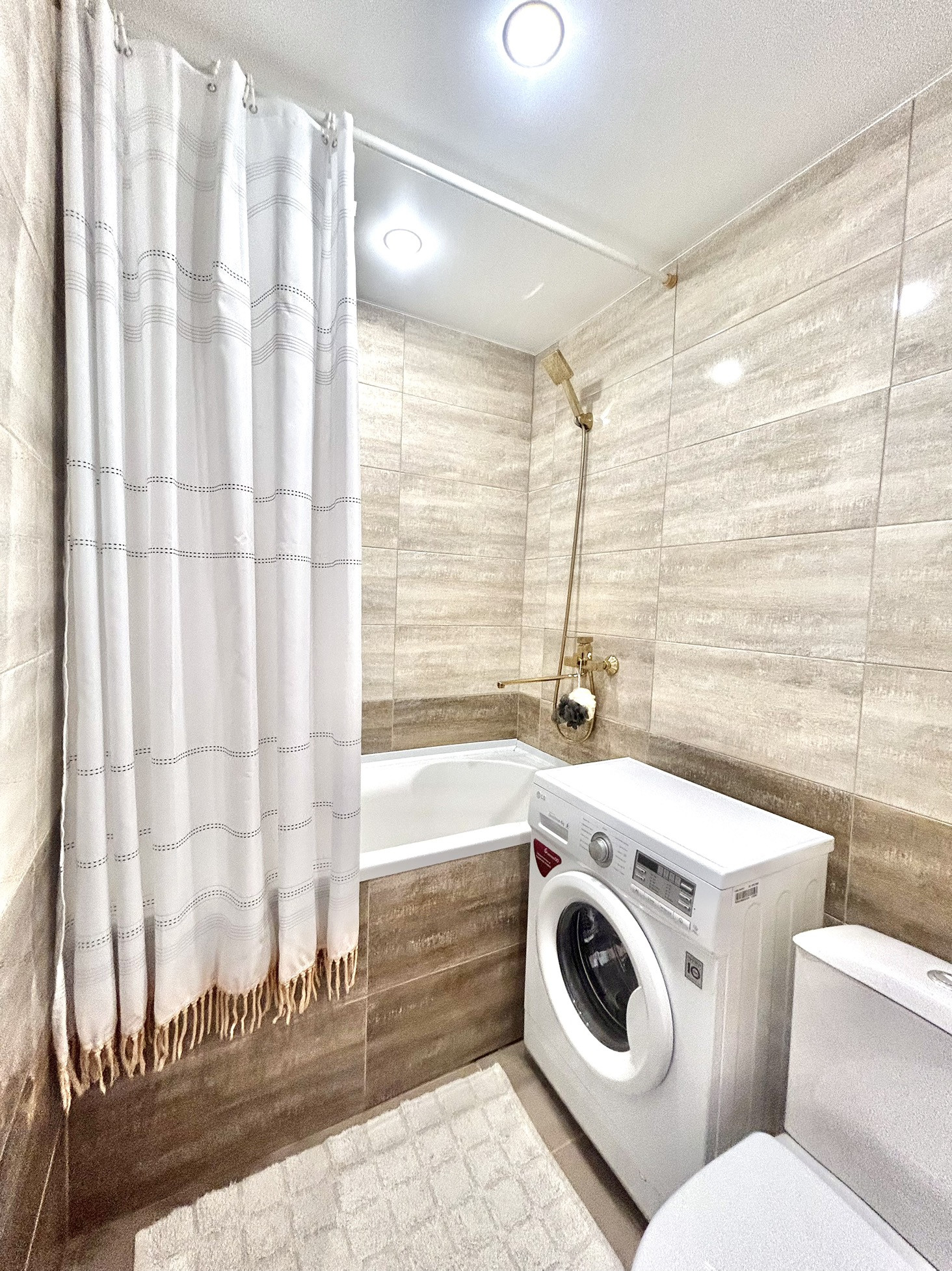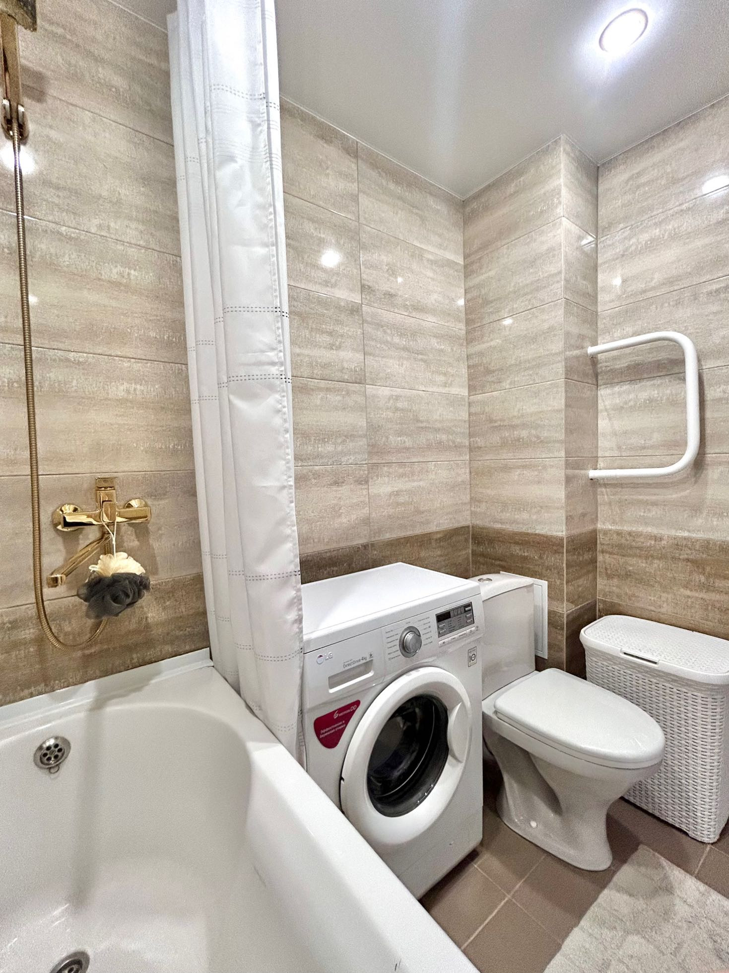 В квартире совмещенный санузел в кафеле.