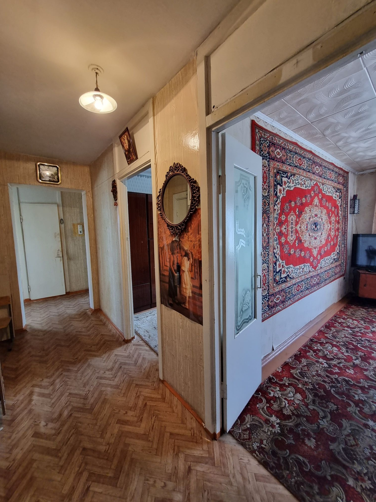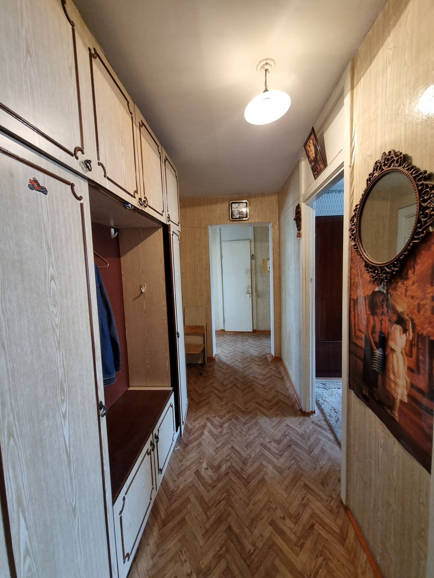 Удобная планировка -длинный коридор, раздельные комнаты, большая кухня.