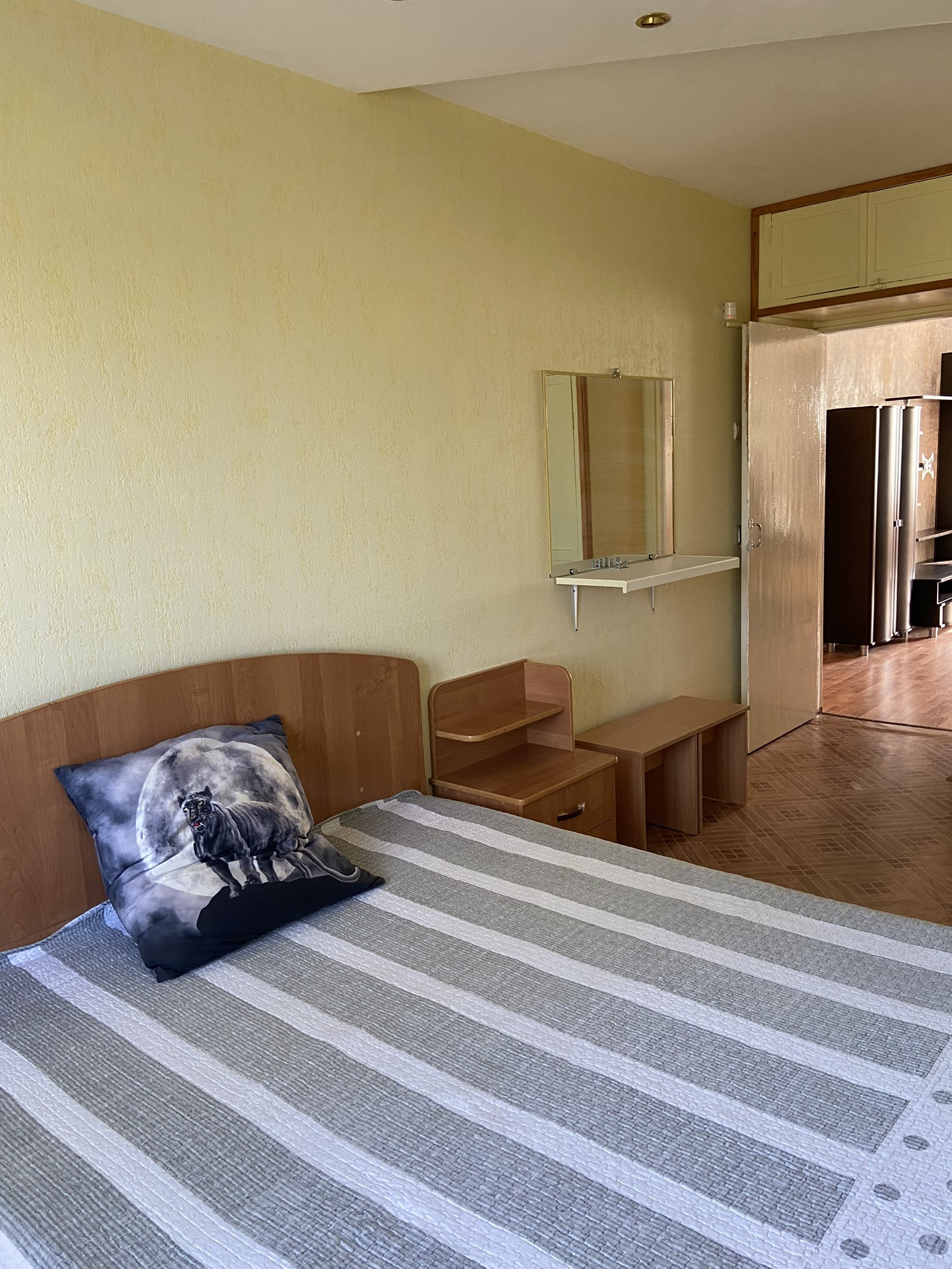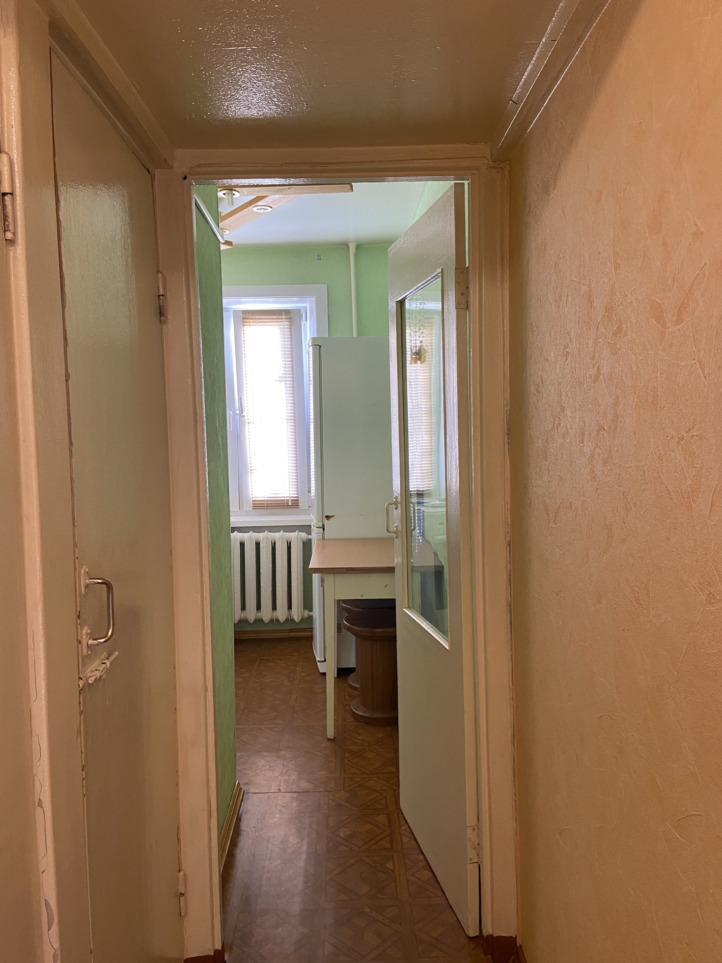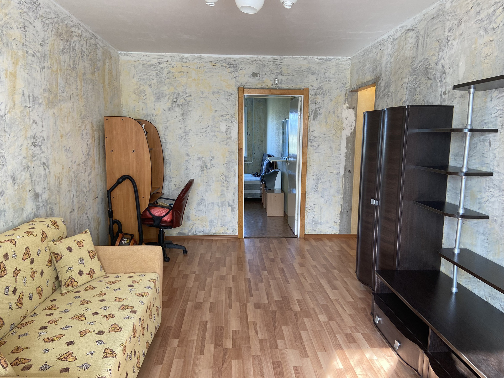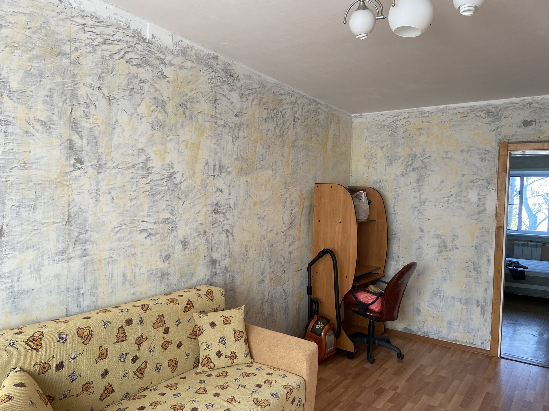 ЗАЛ: замена окна, на полу ламинат, стены подготовлены под оклейку обоями. Солнечная сторона.