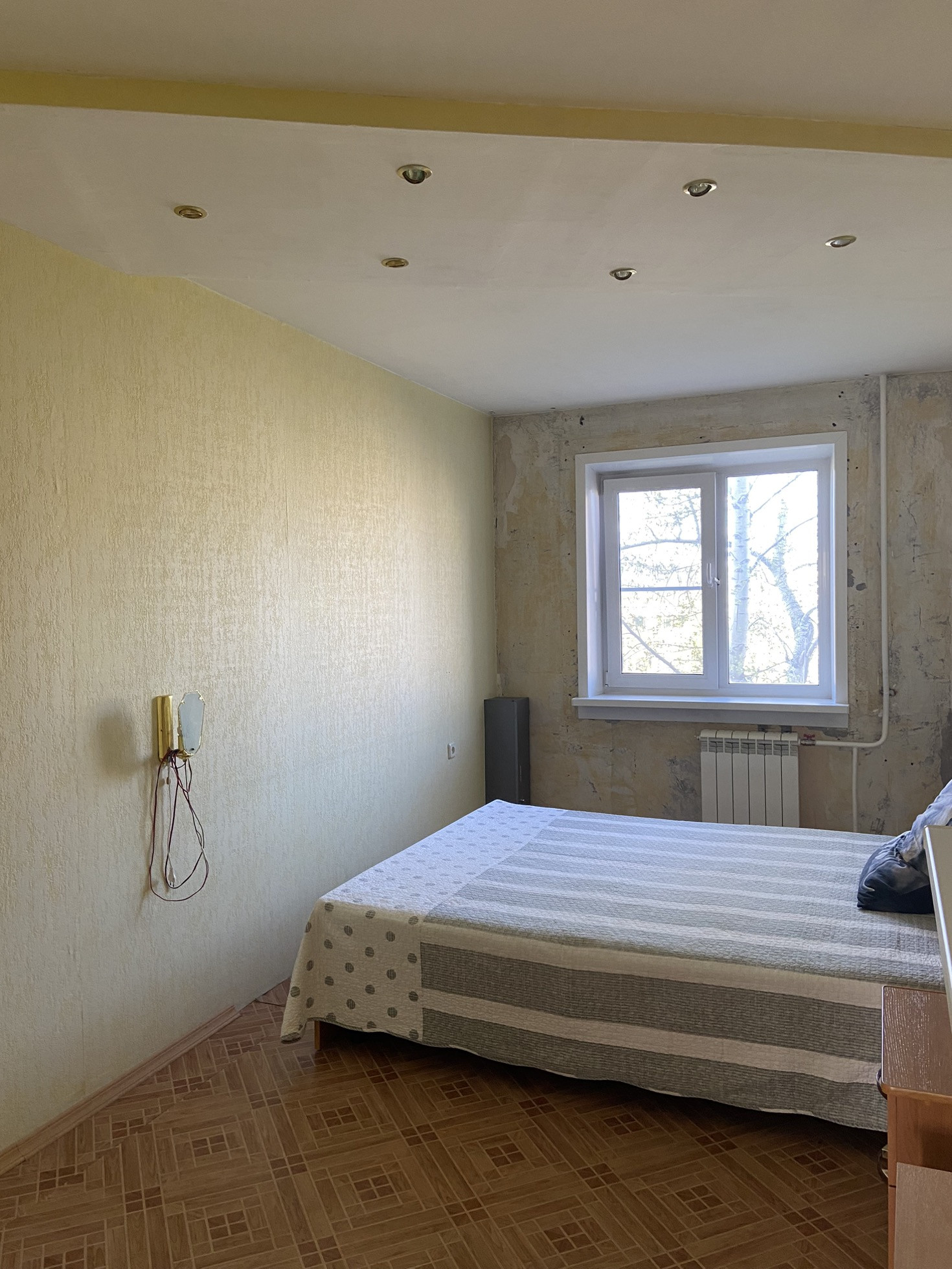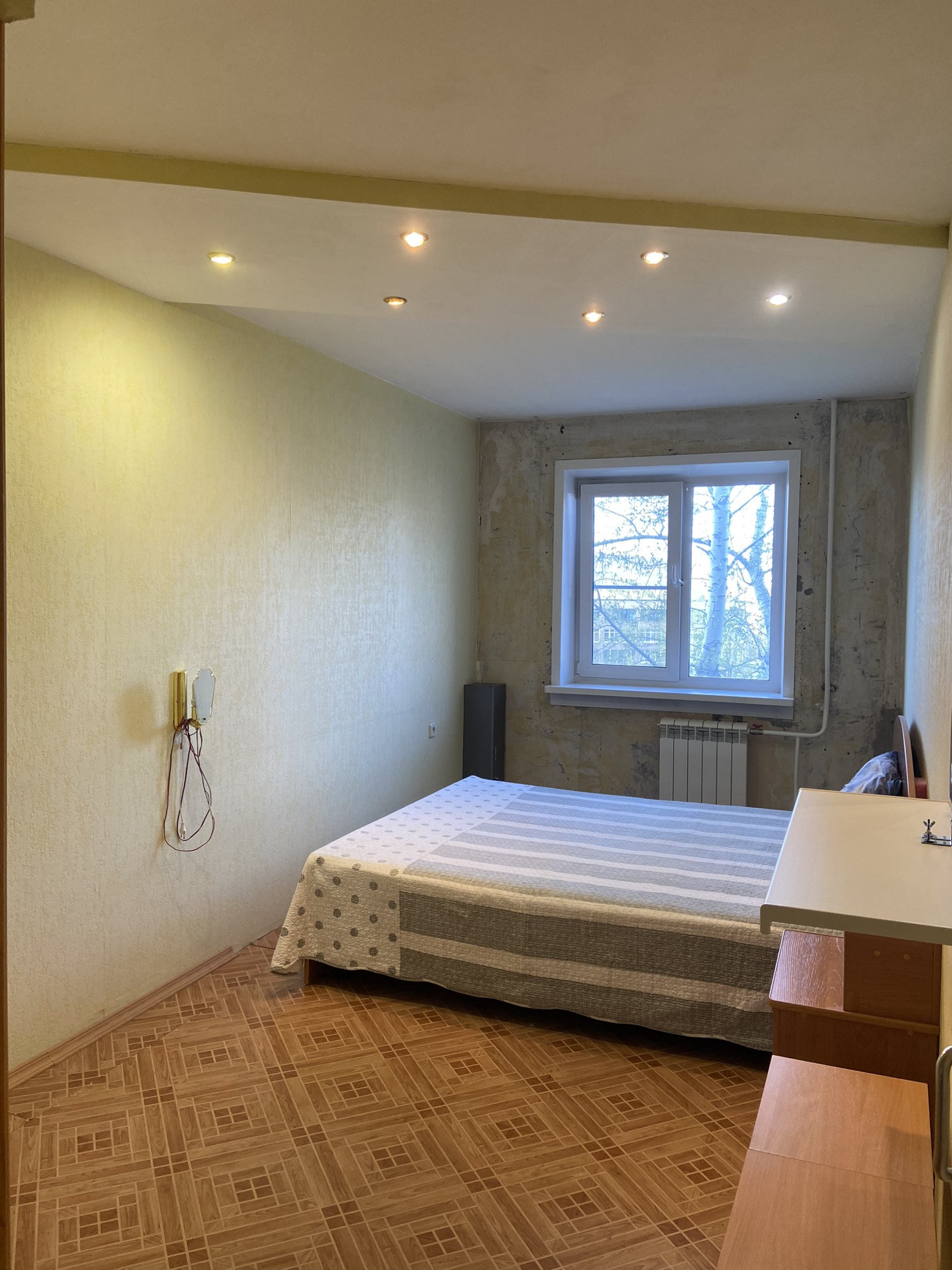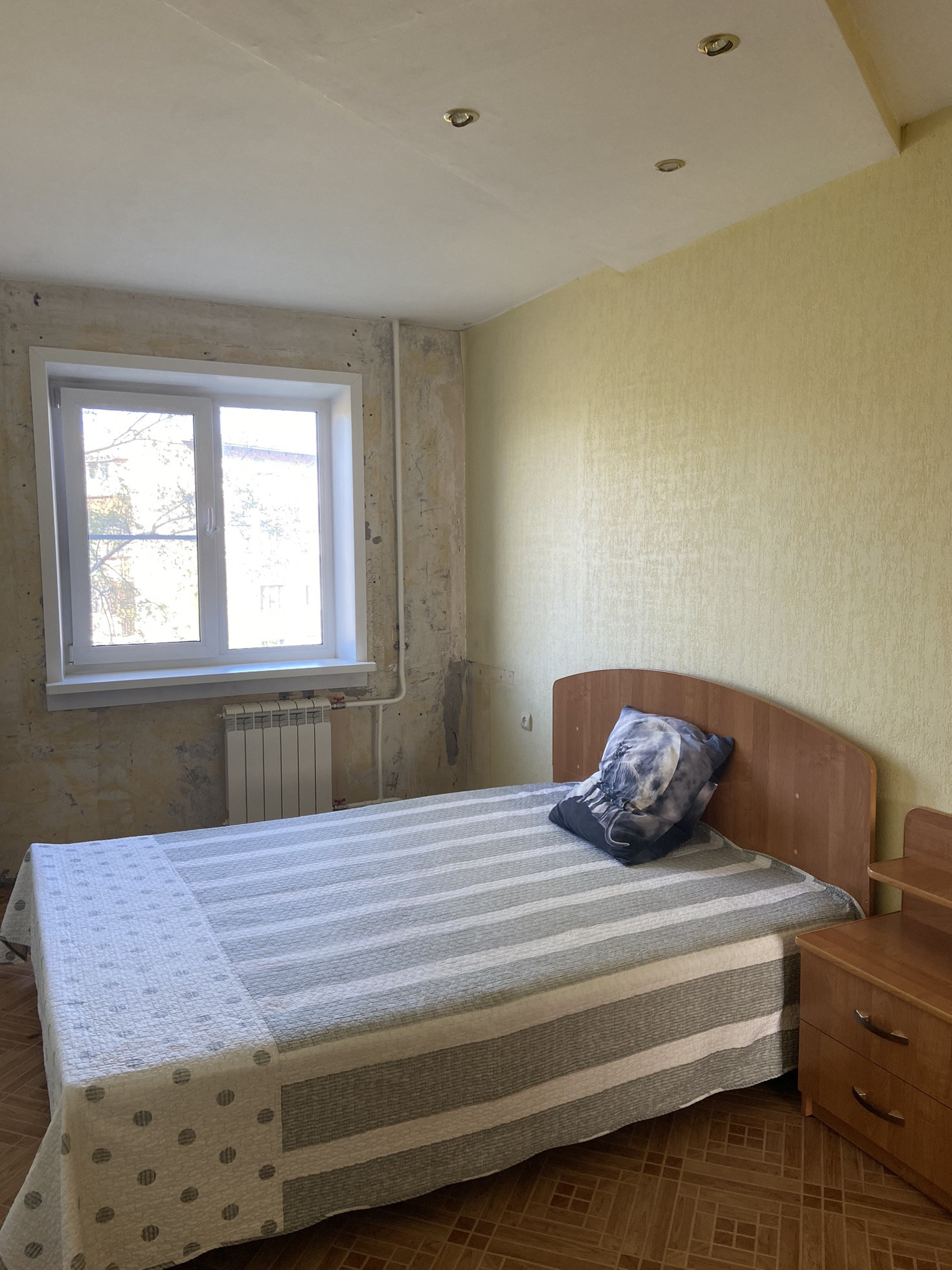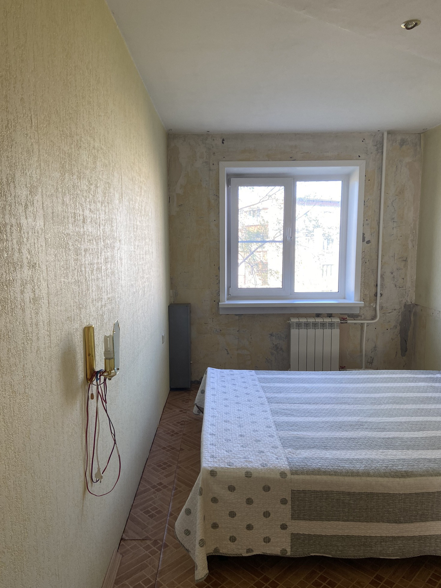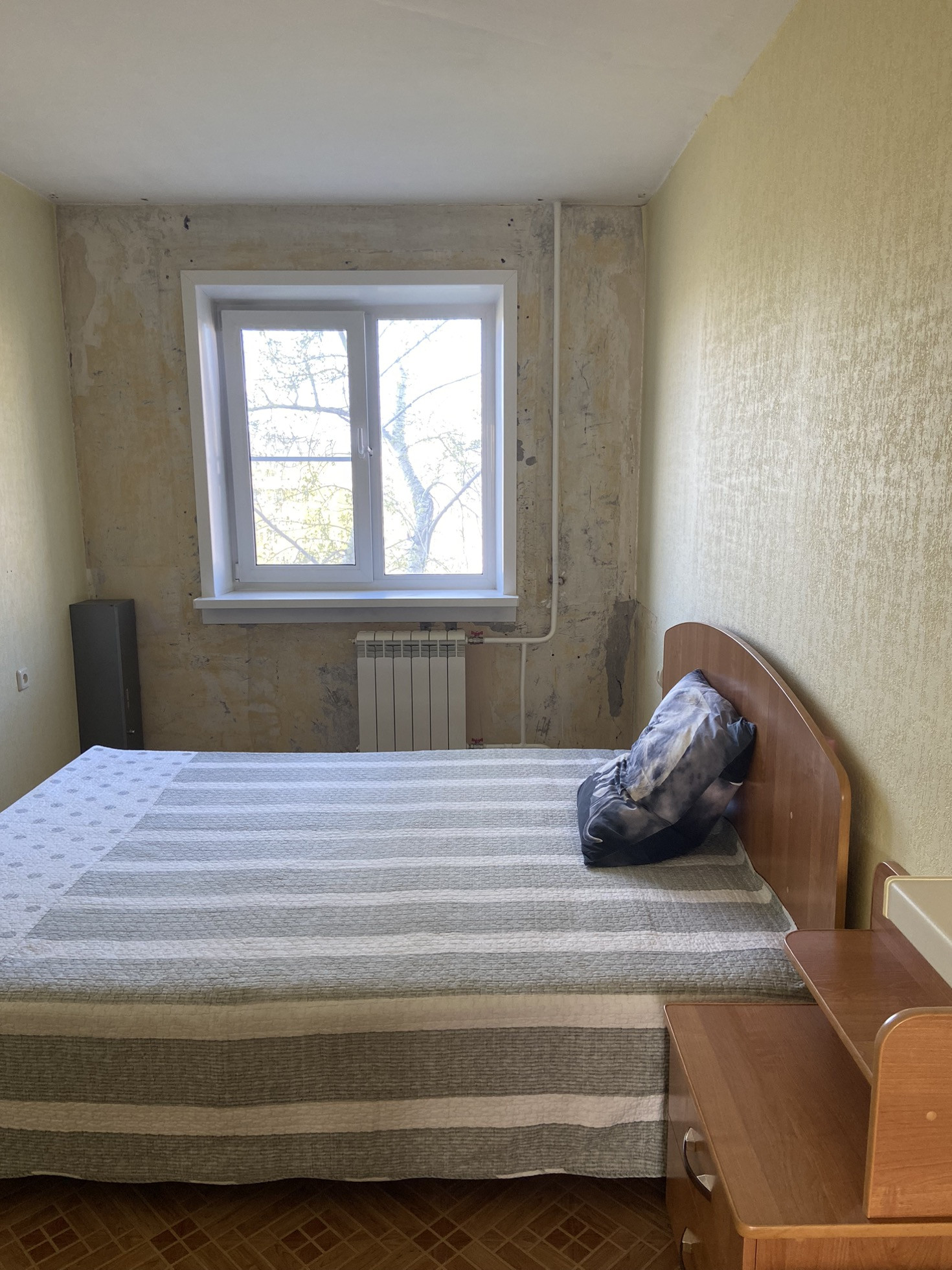 СПАЛЬНЯ: замена окна, замена батареи, на полу линолеум.