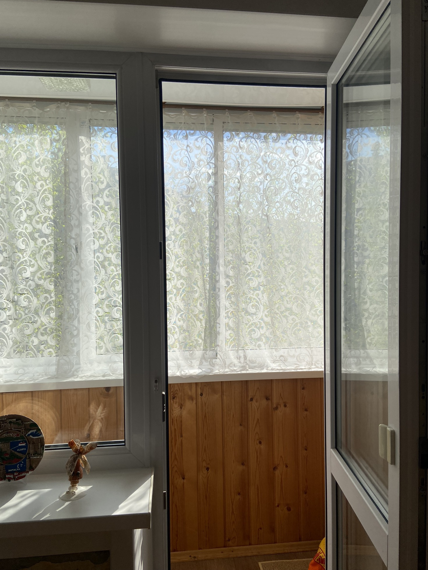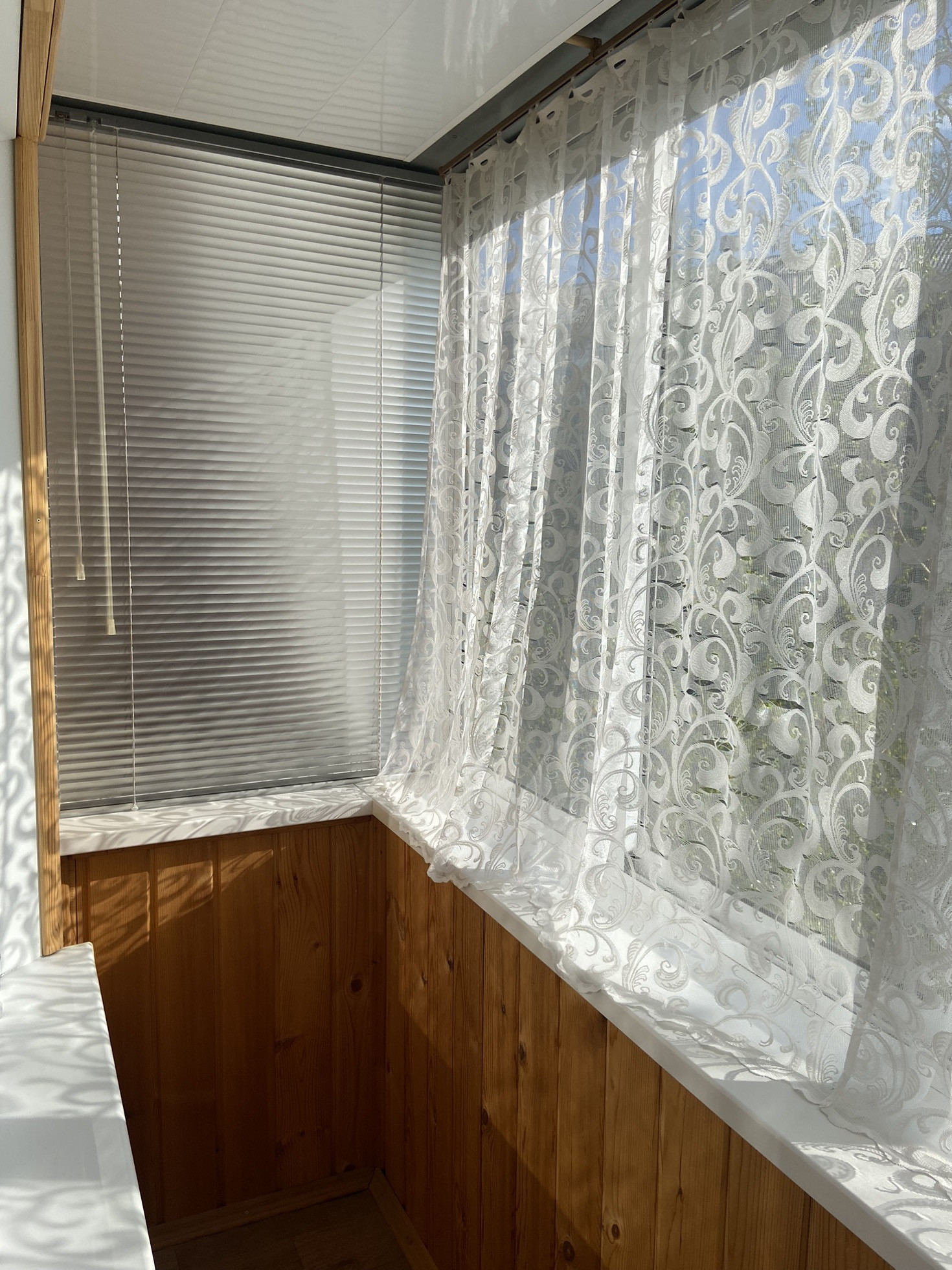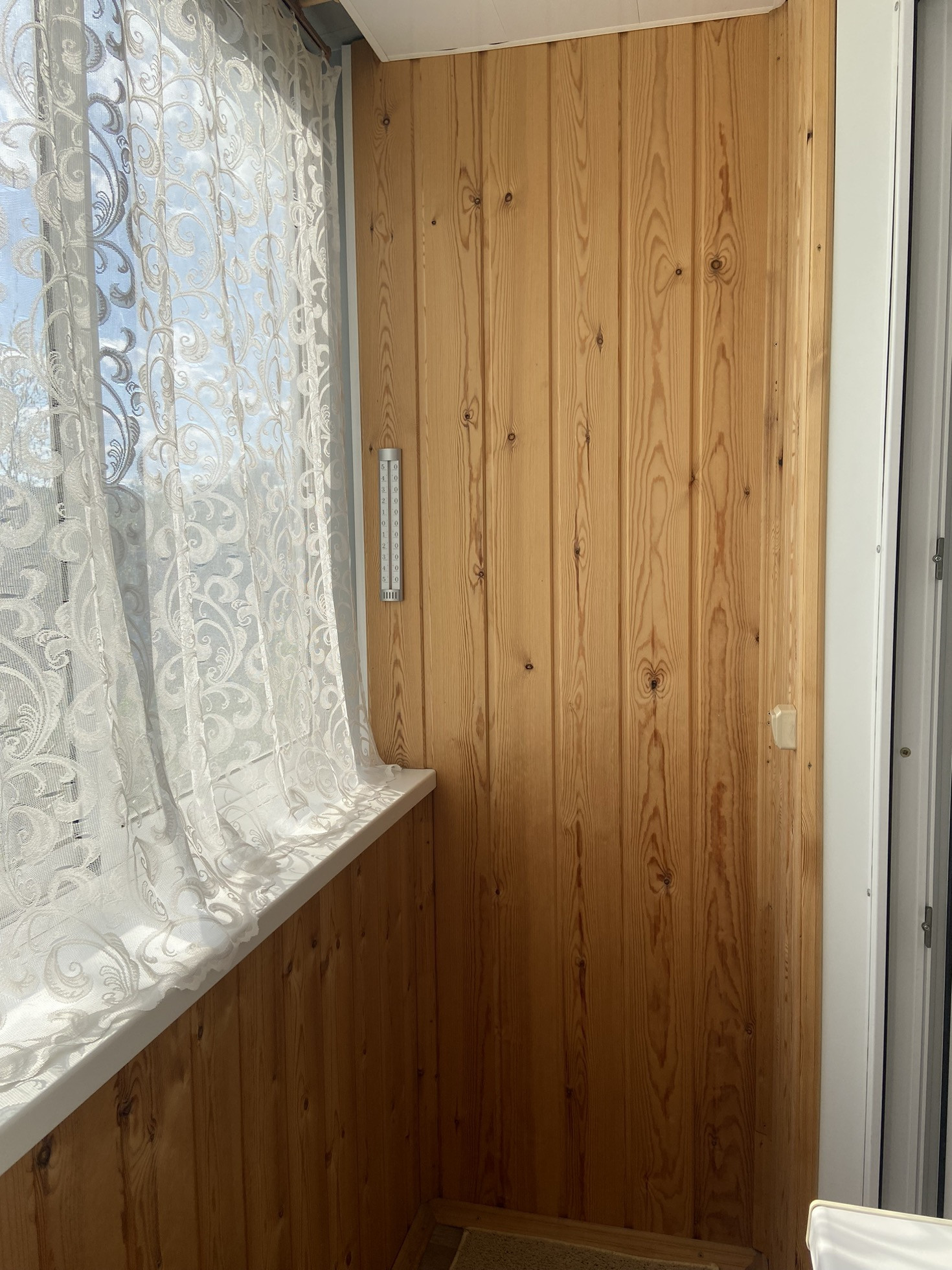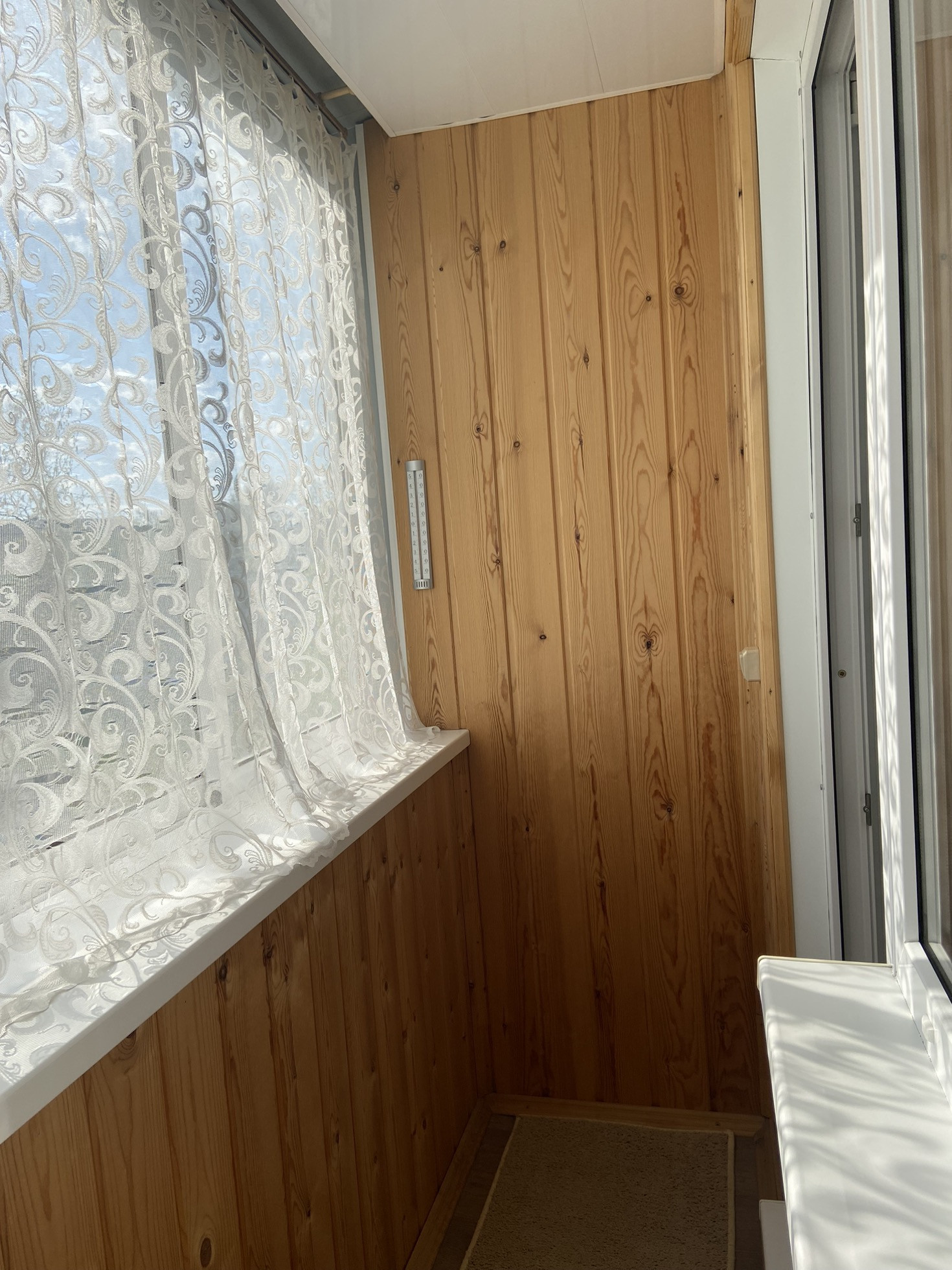 БАЛКОН: застеклен, отделан изнутри деревом, снаружи сайдингом. Светильник. Солнечная сторона.