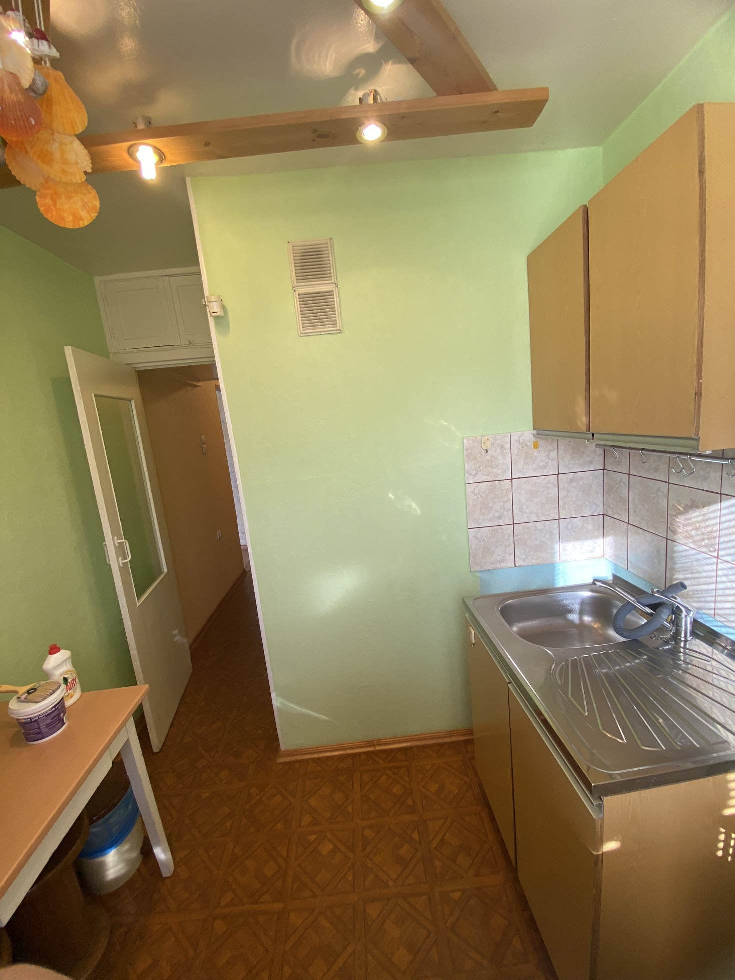КУХНЯ: замена окна. На полу линолеум.