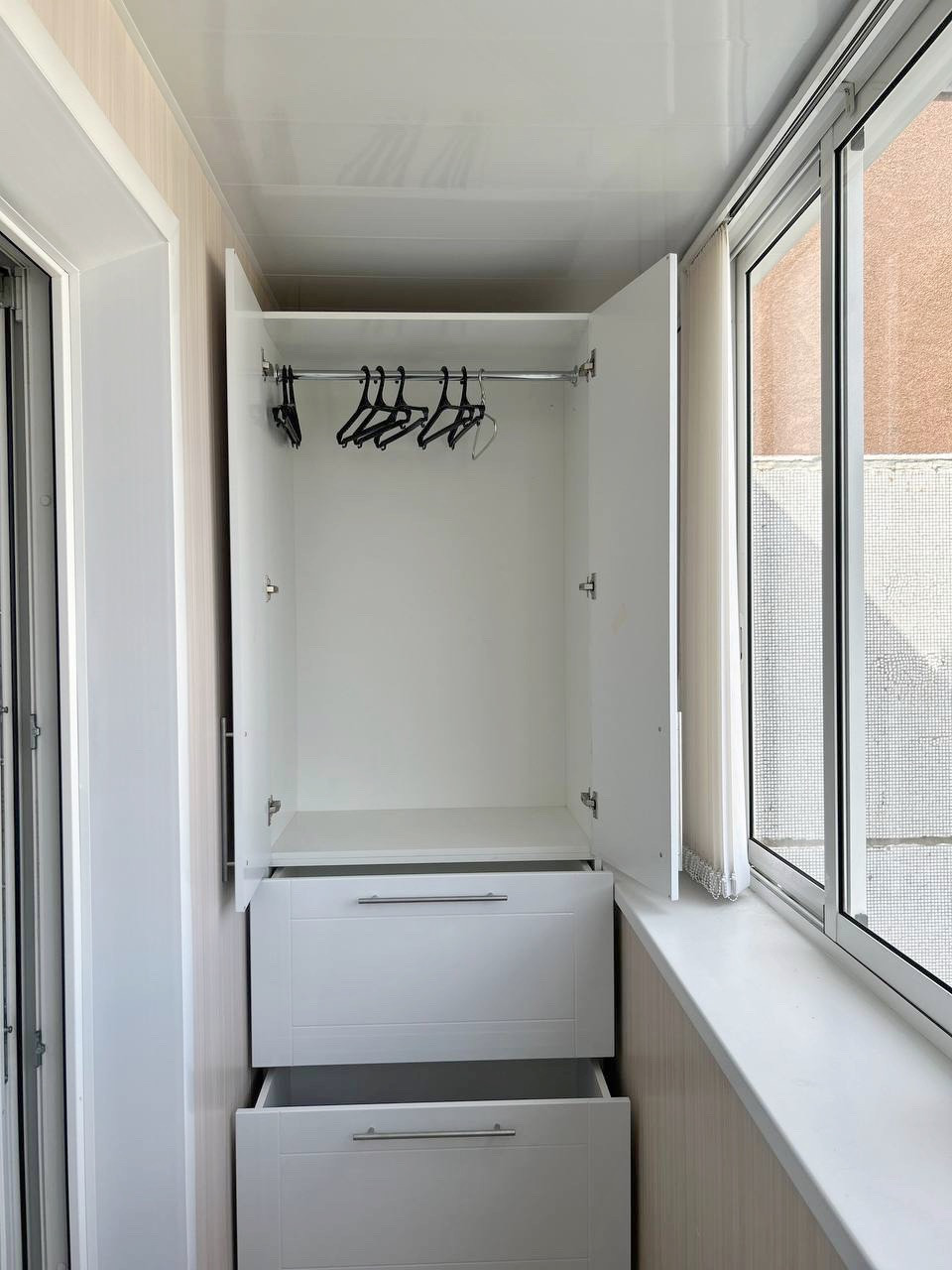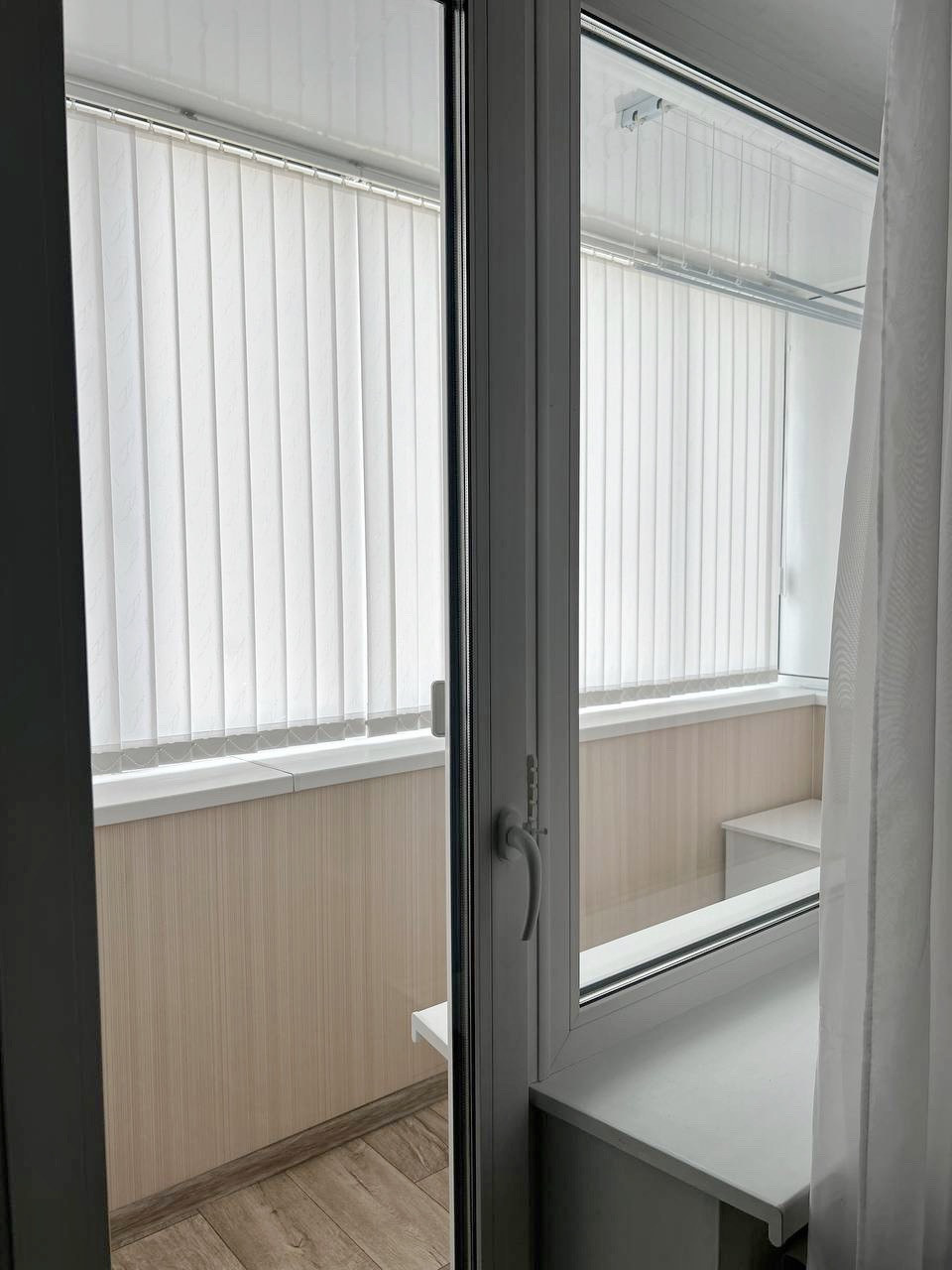 Имеется большой застекленный балкон, с внутренней отделкой. На балконе имеются встроенные удобные шкафы.