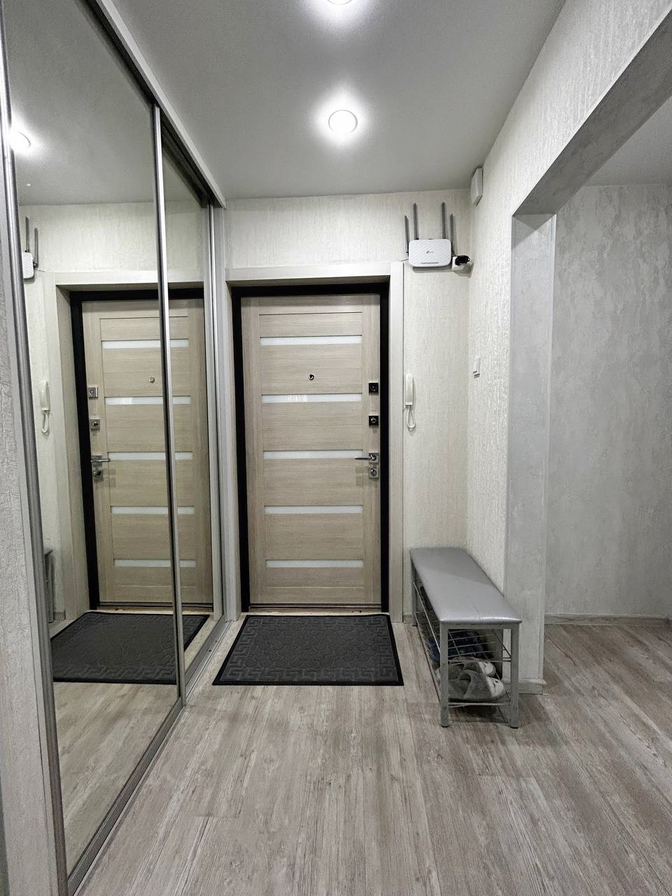 Произведены замены всего: окна, двери-входная и межкомнатные, потолок натяжной по всей квартире, на полу постелен качественный ламинат, стены выровнены, наклеены свежие современные обои. Санузел совмещенный в кафеле, заменена вся сантехника, установлены приборы учета воды.